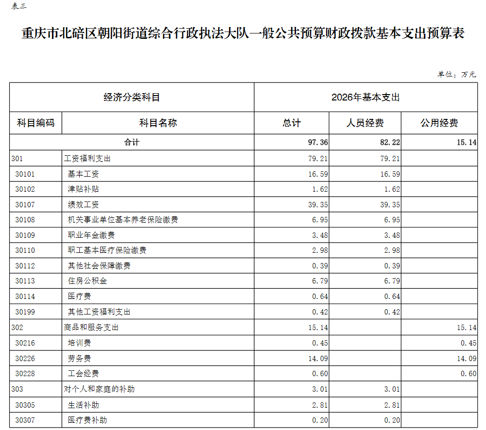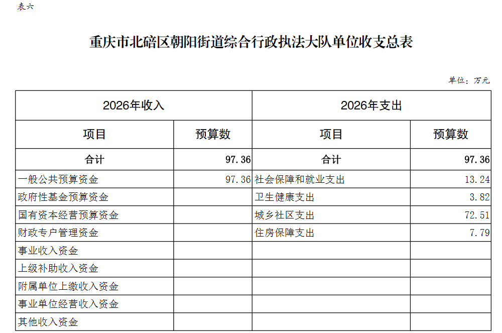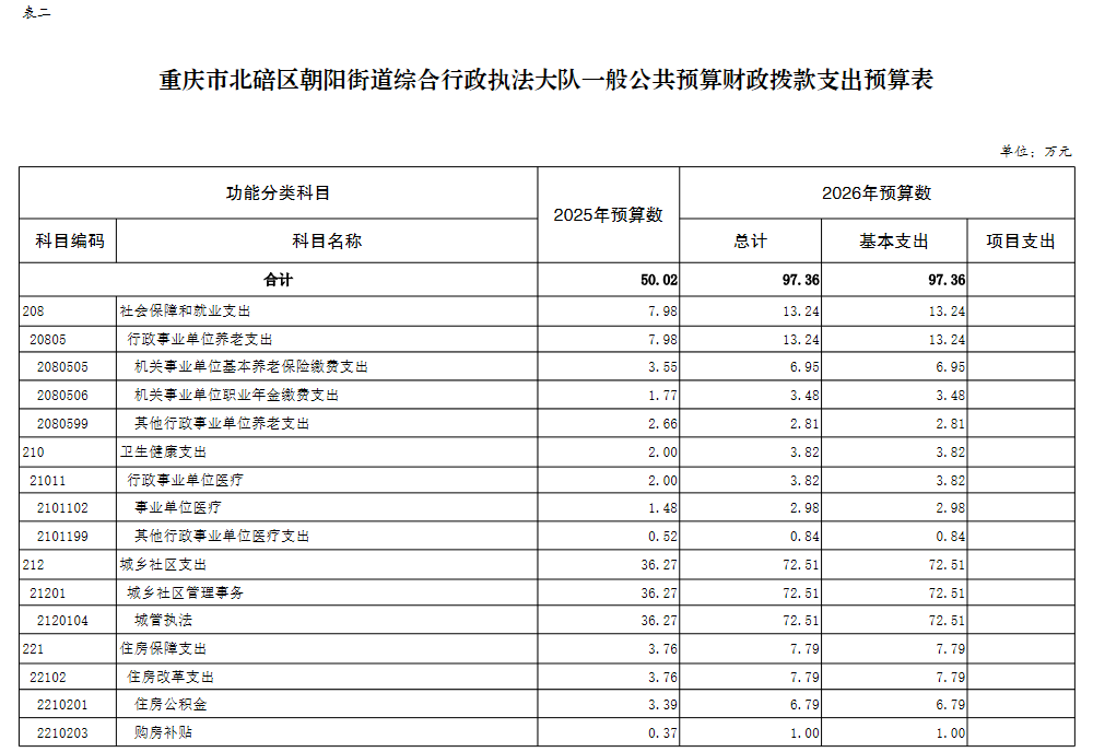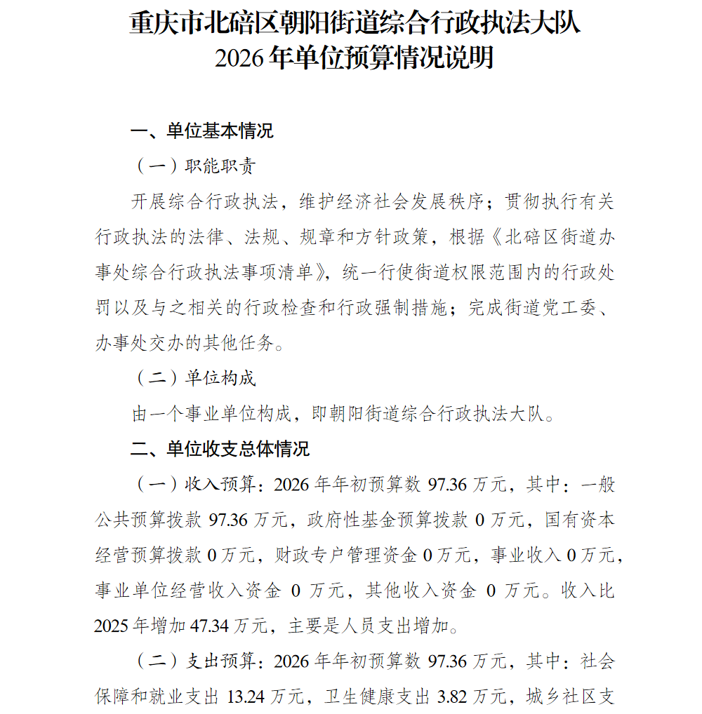 重庆市北碚区朝阳街道综合行政执法大队2026年单位预算情况说明及附表.pdf