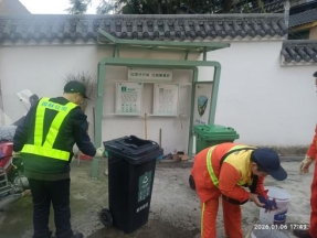 (二)对辖区三无小区分类设施进行保洁,累计分类桶279个,分类亭41个。