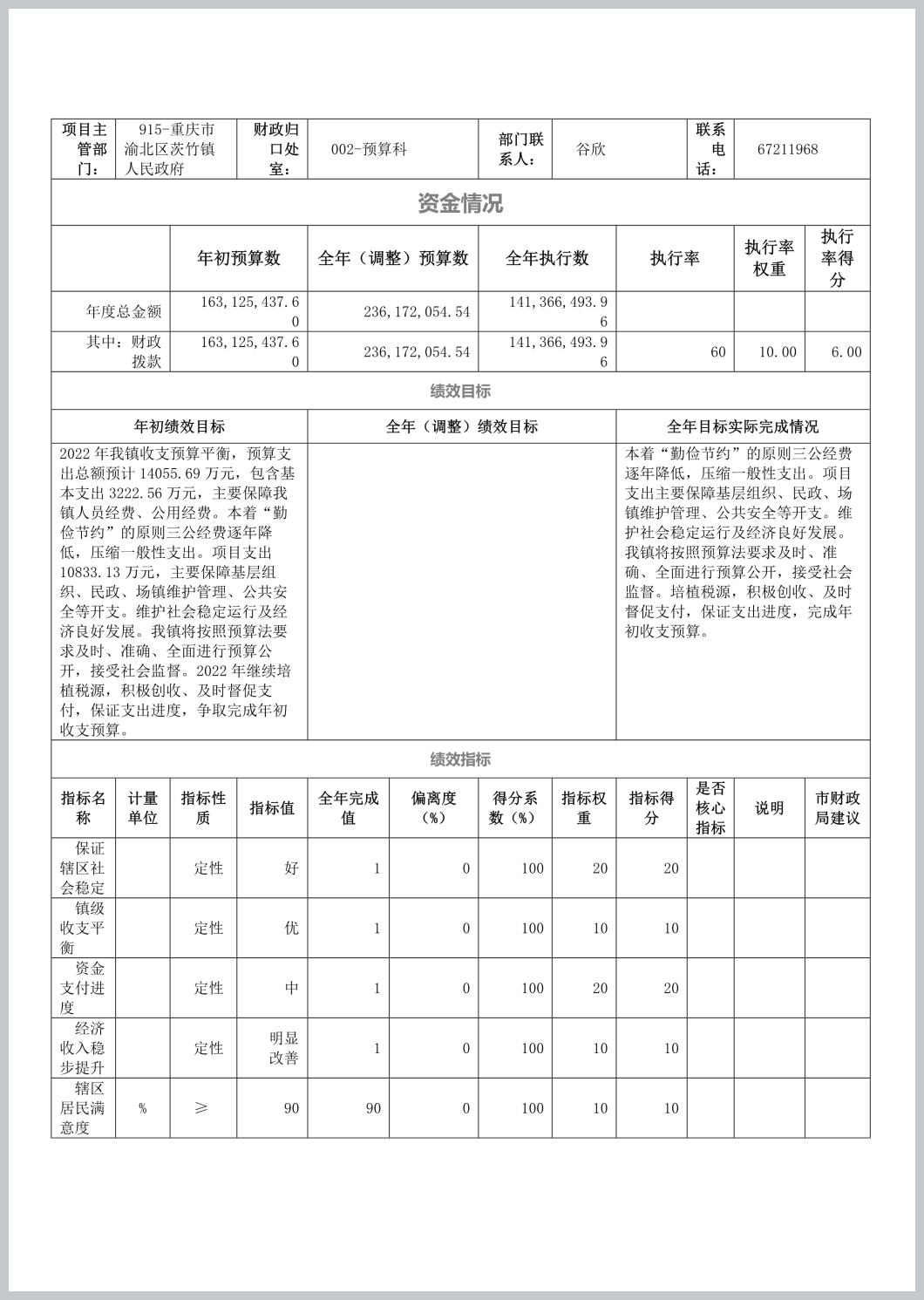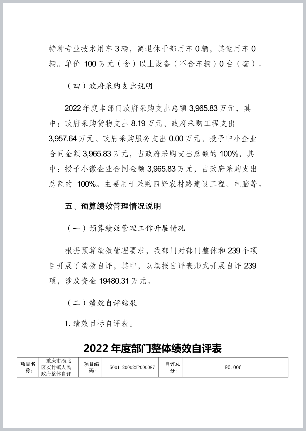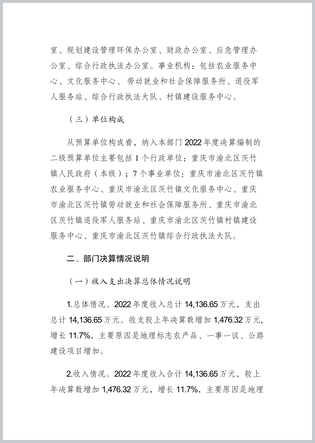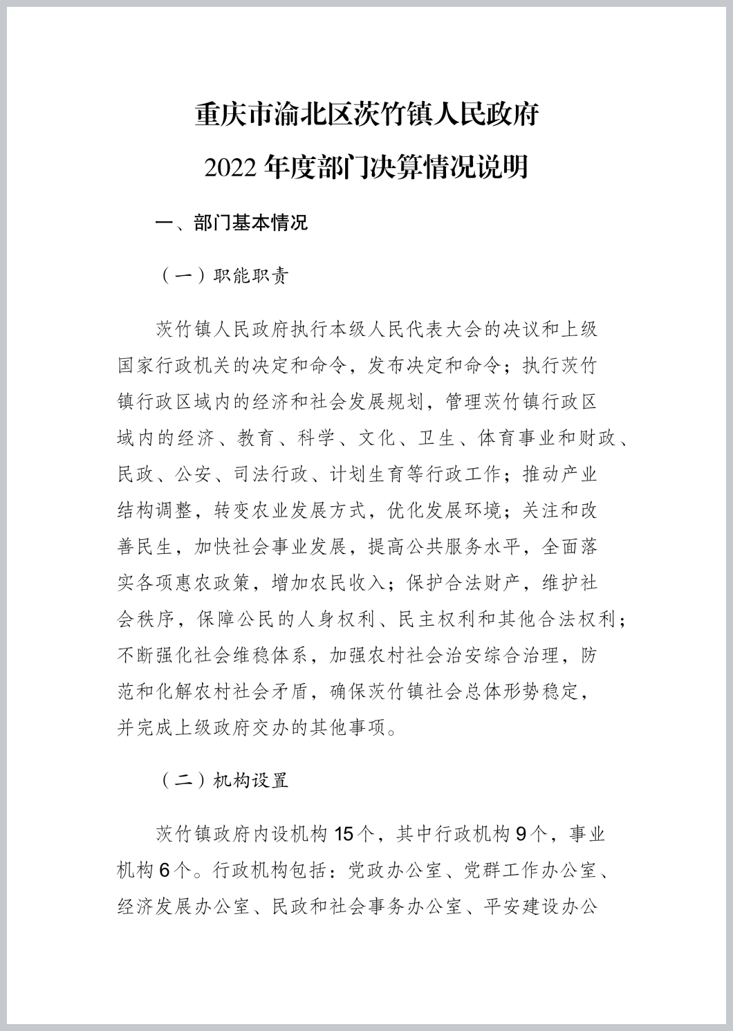 重庆市渝北区茨竹镇人民政府2022年部门决算公开
