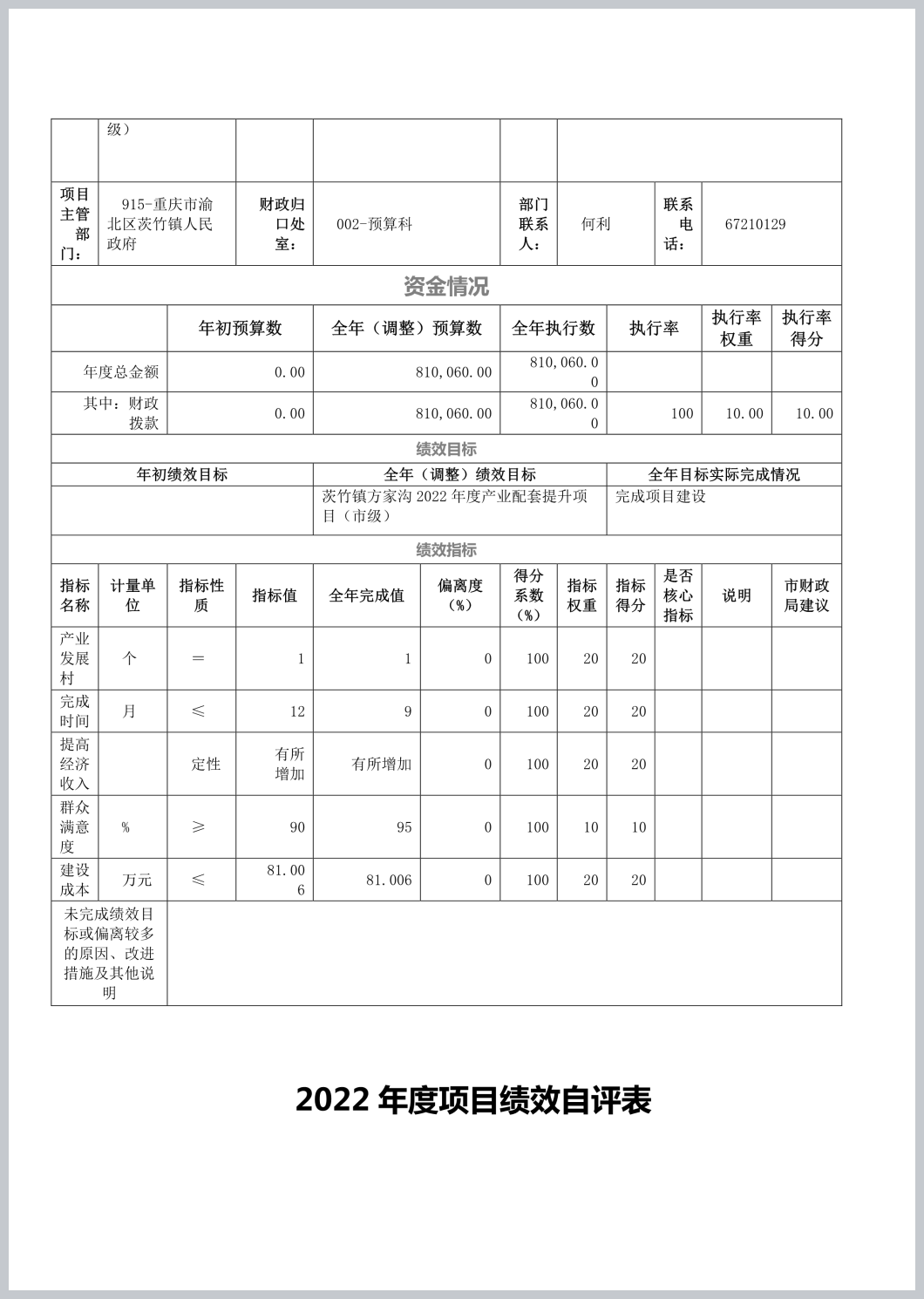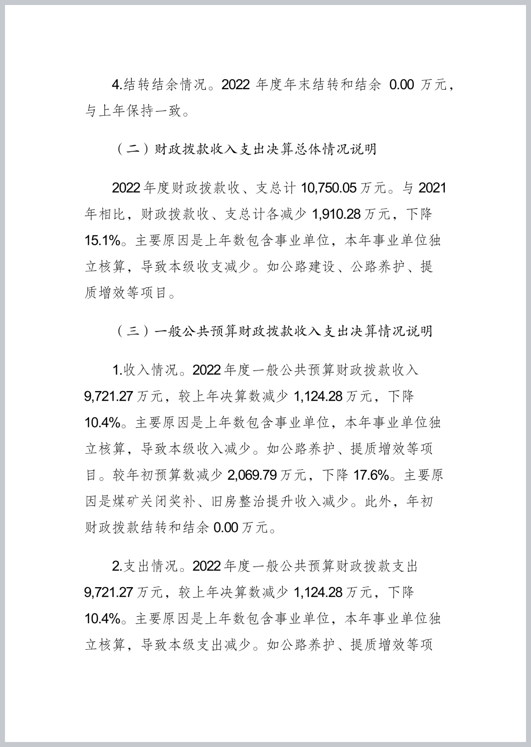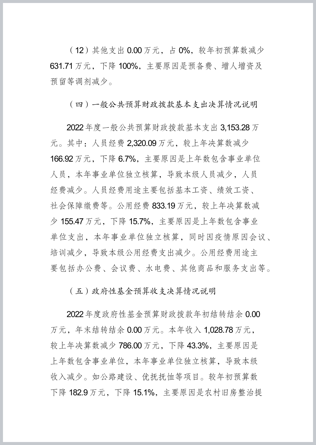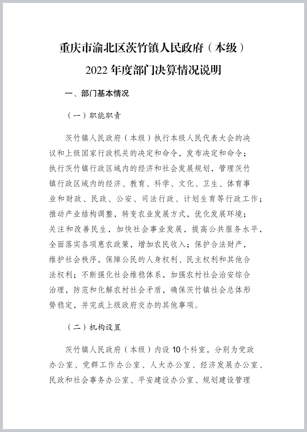 重庆市渝北区茨竹镇人民政府(本级)2022年部门决算公开