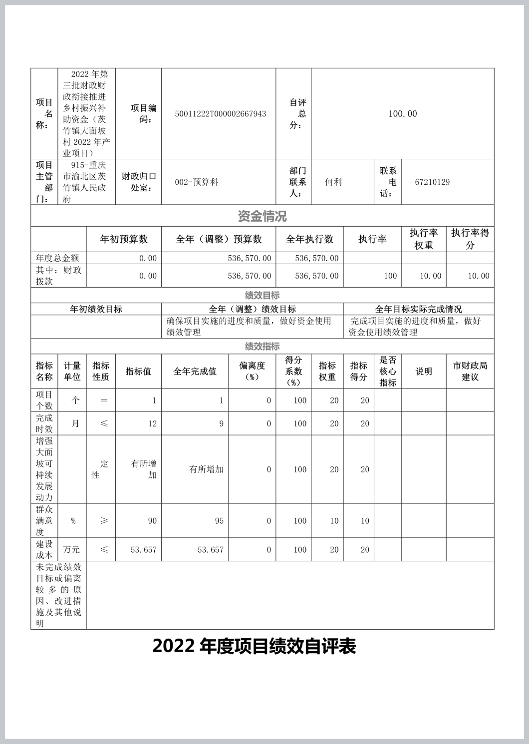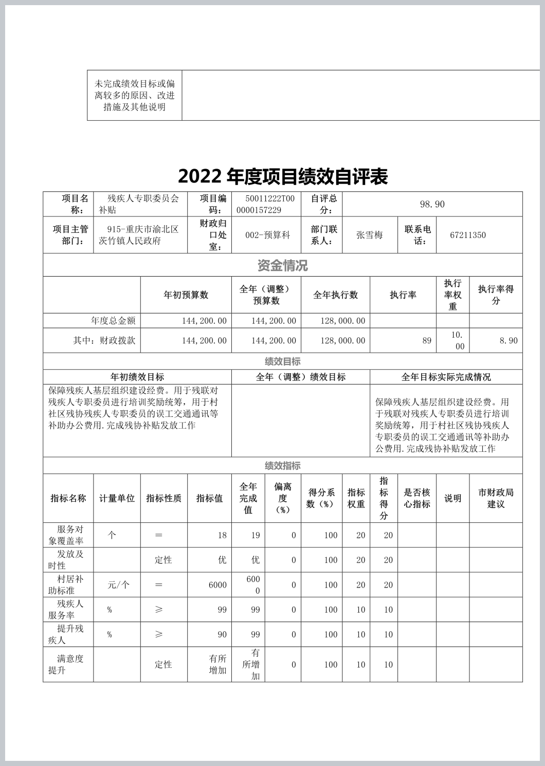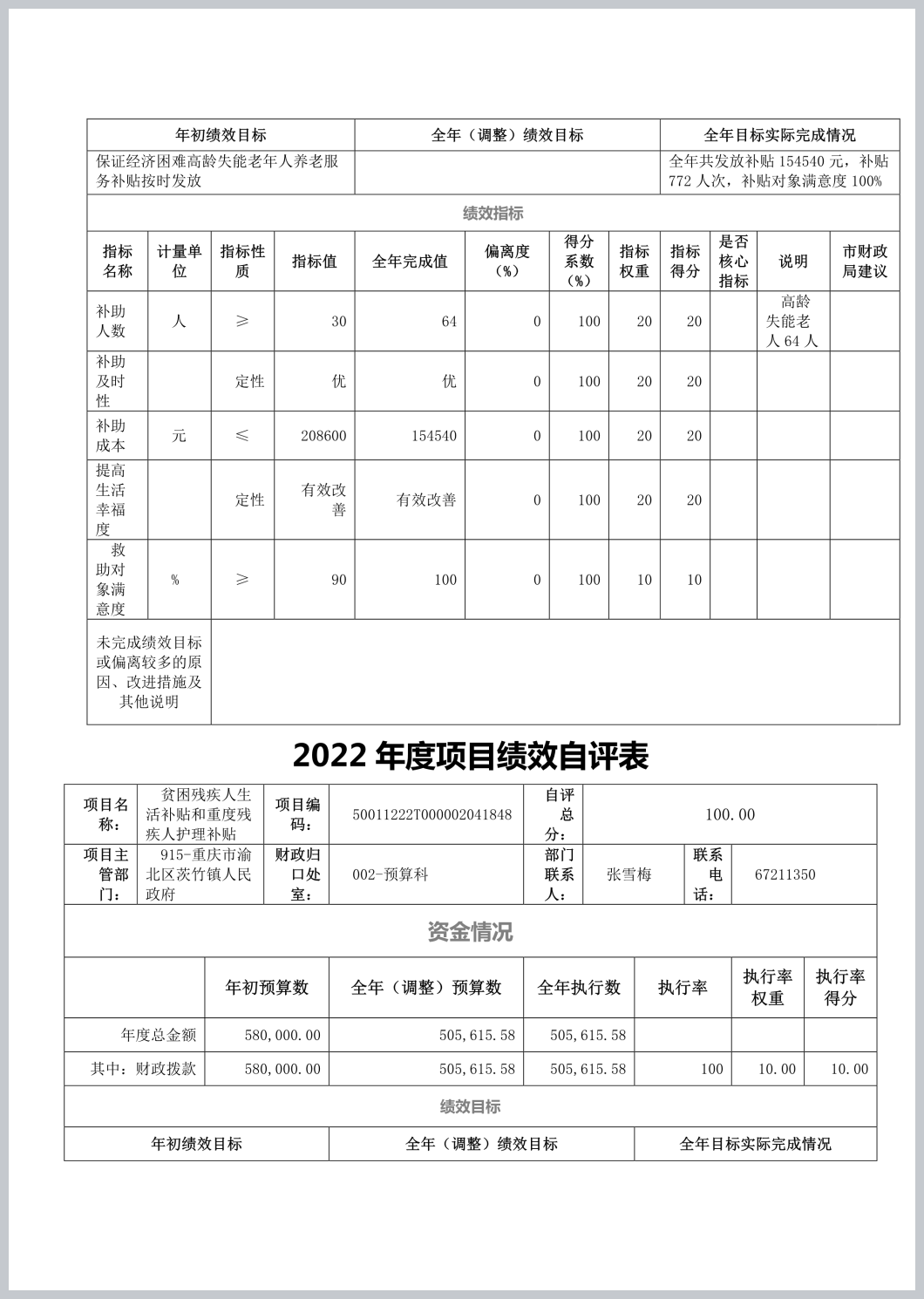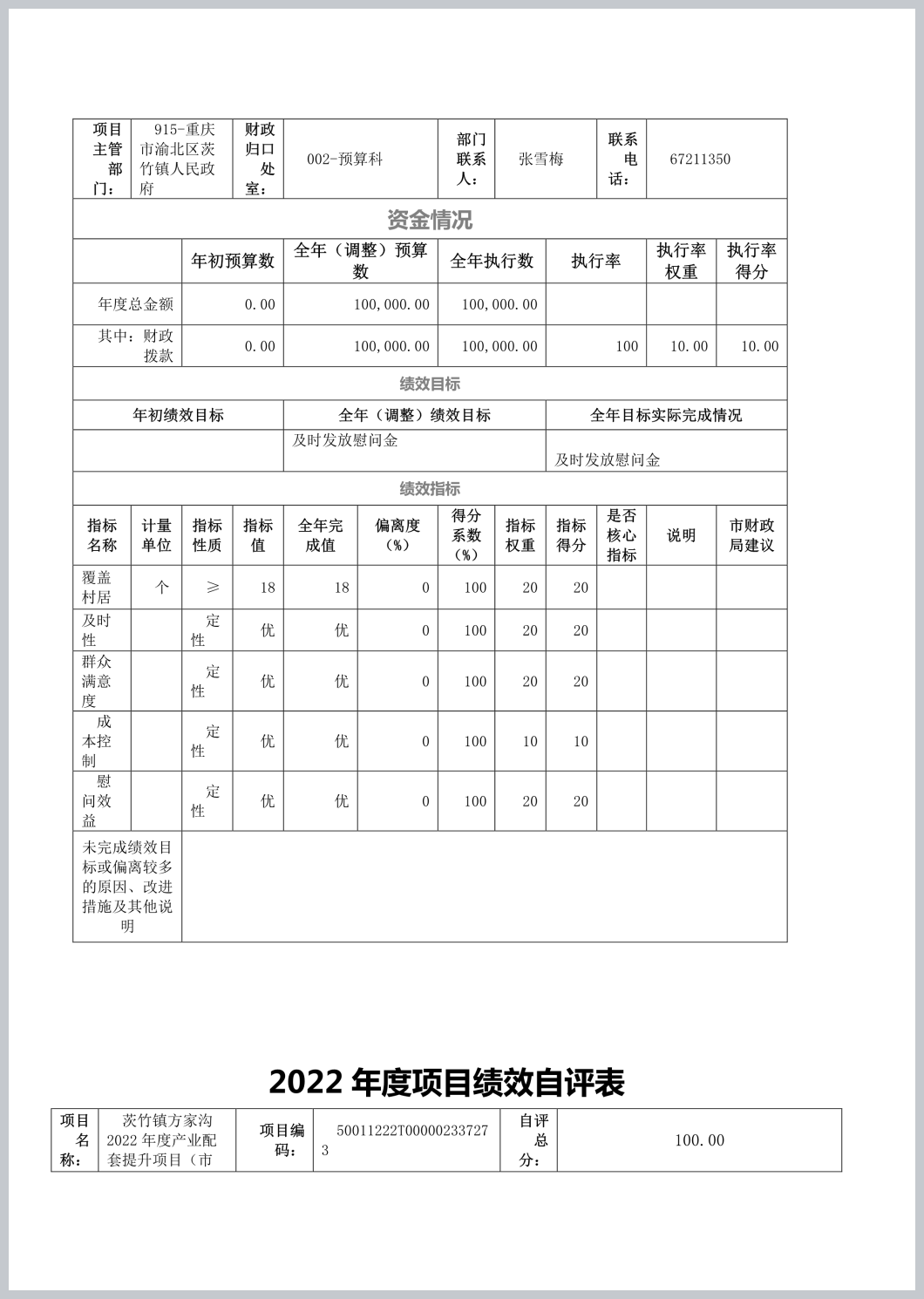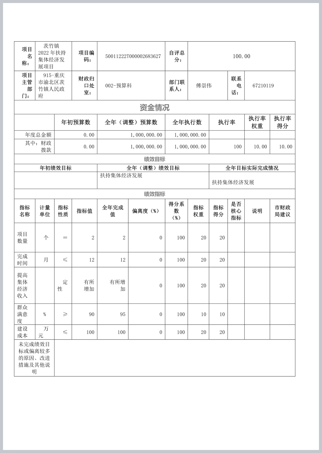 重庆市渝北区茨竹镇人民政府(本级)2022年部门决算公开