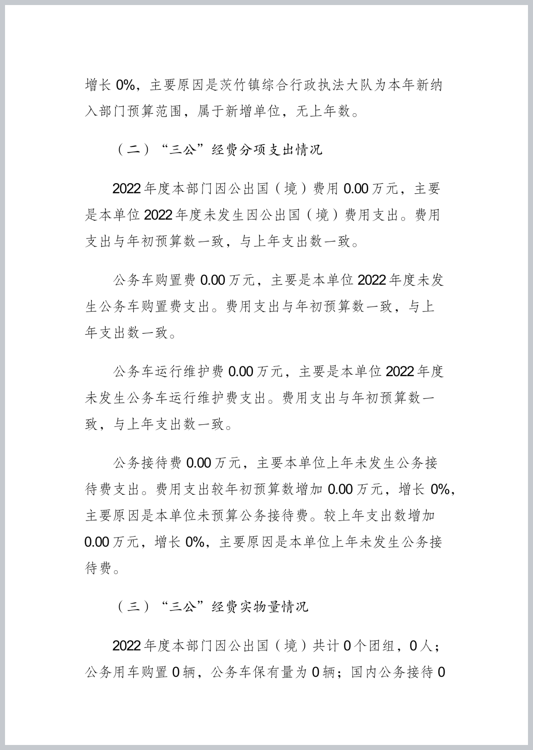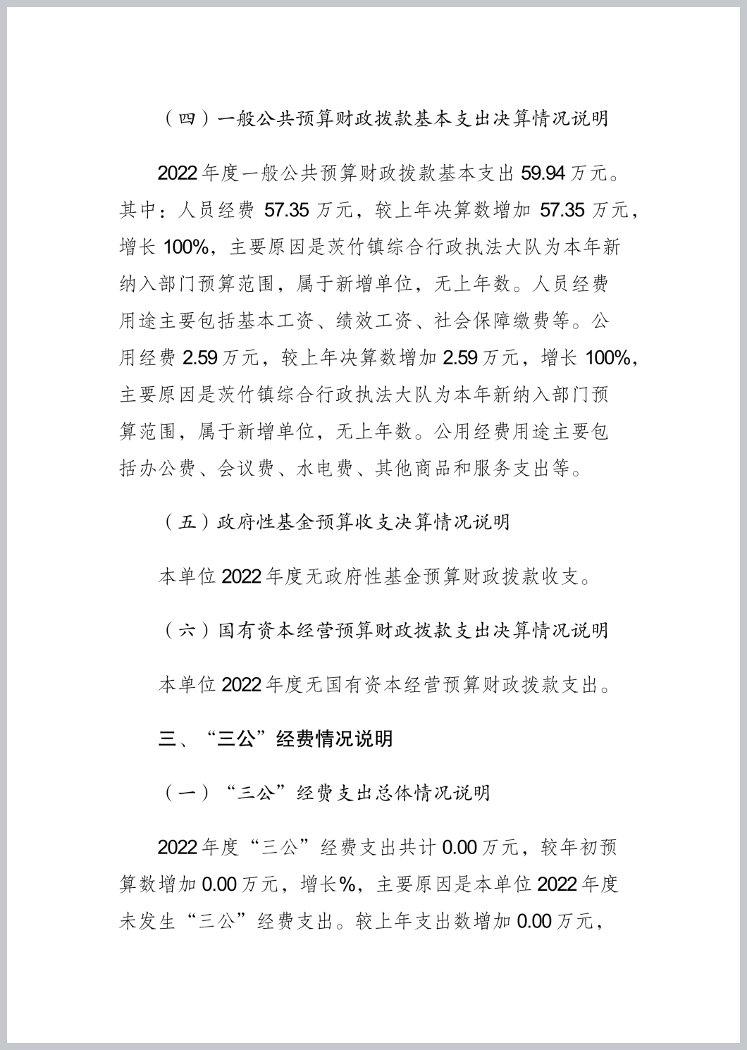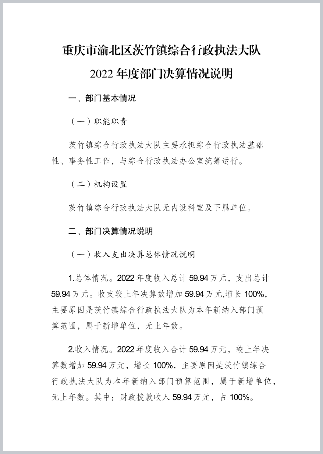 重庆市渝北区茨竹镇综合行政执法大队2022年部门决算公开