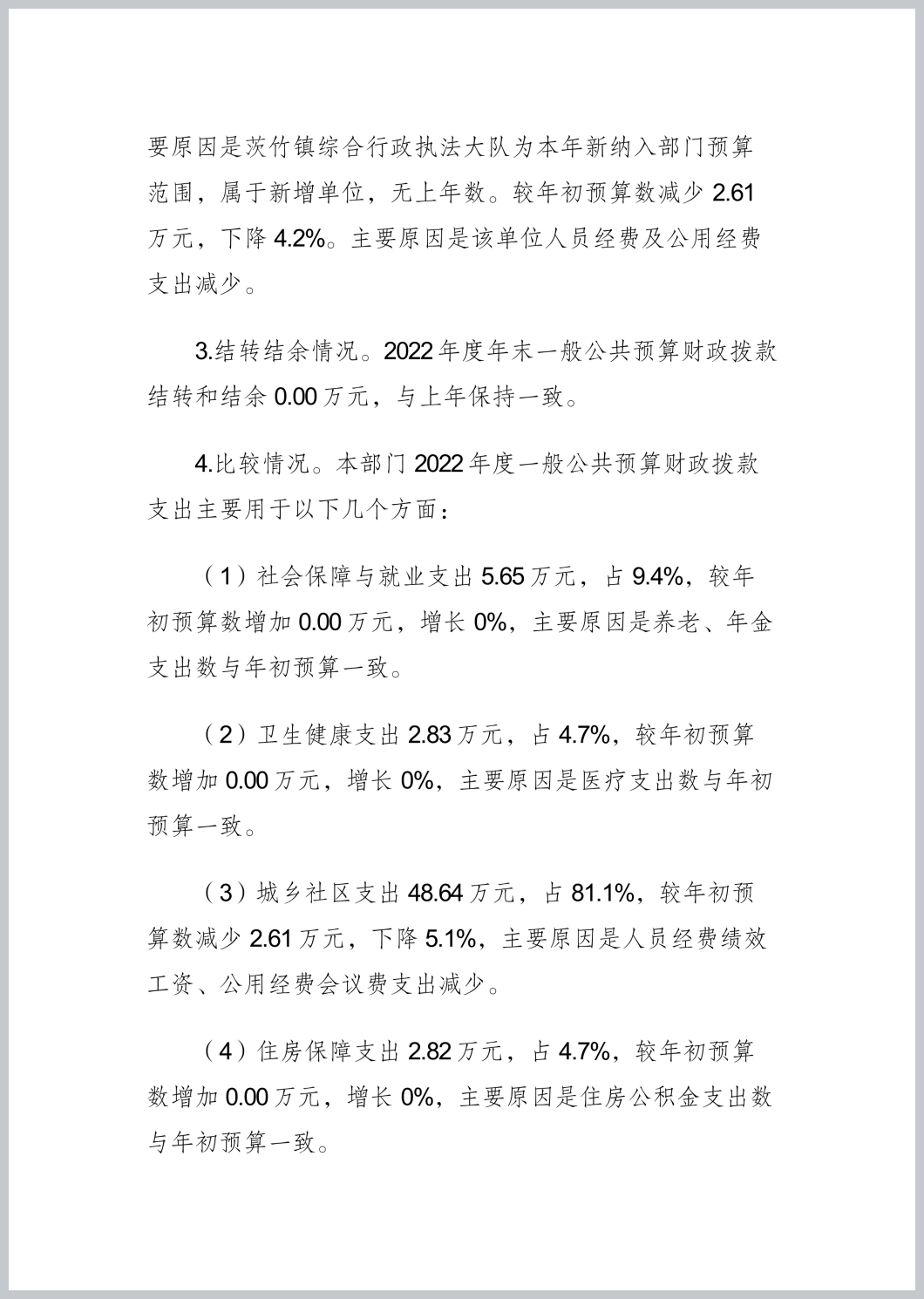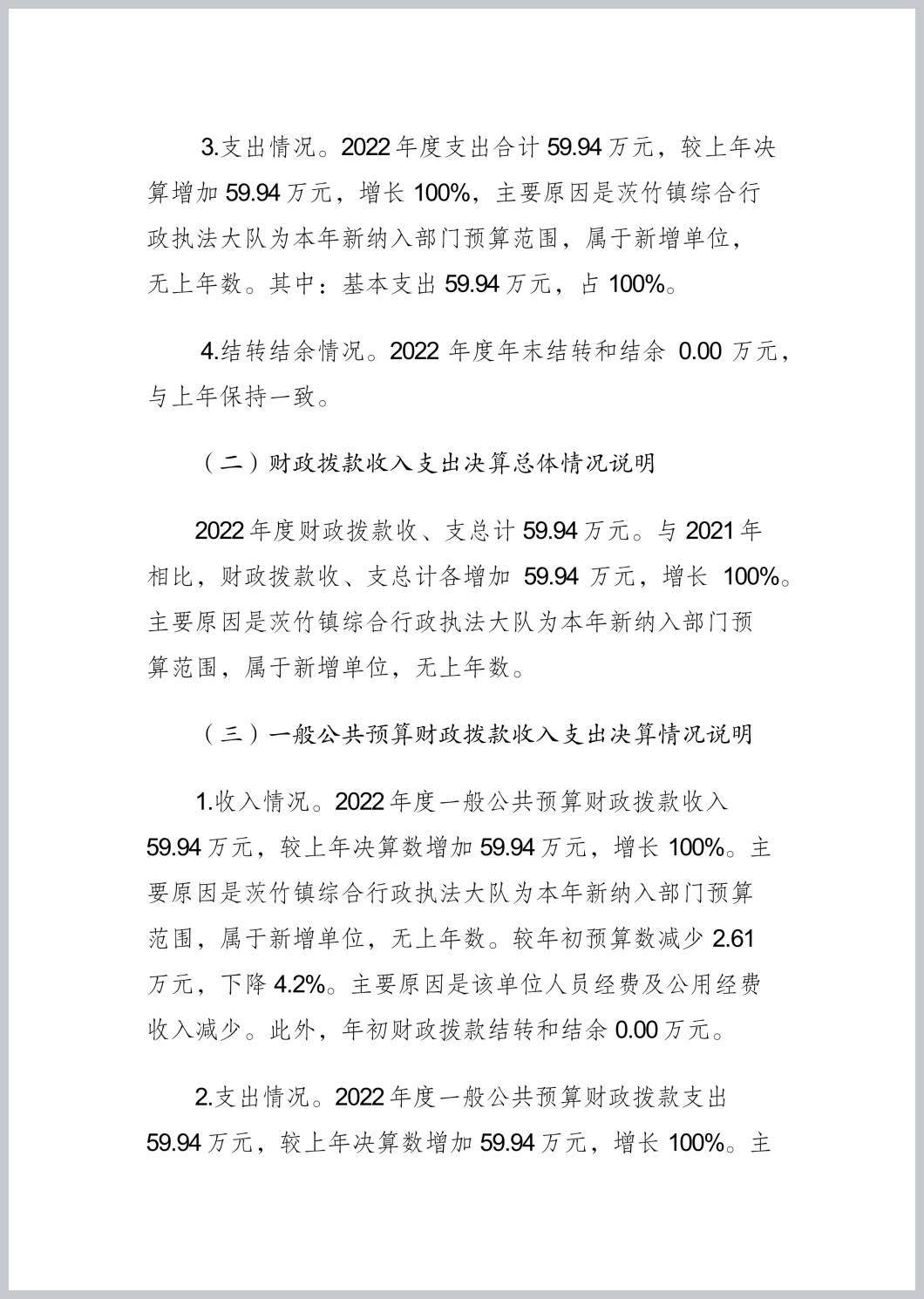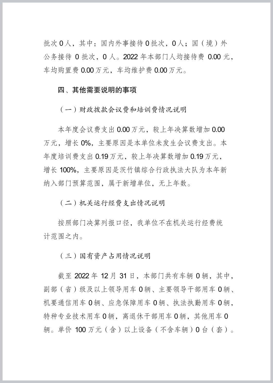 重庆市渝北区茨竹镇综合行政执法大队2022年部门决算公开