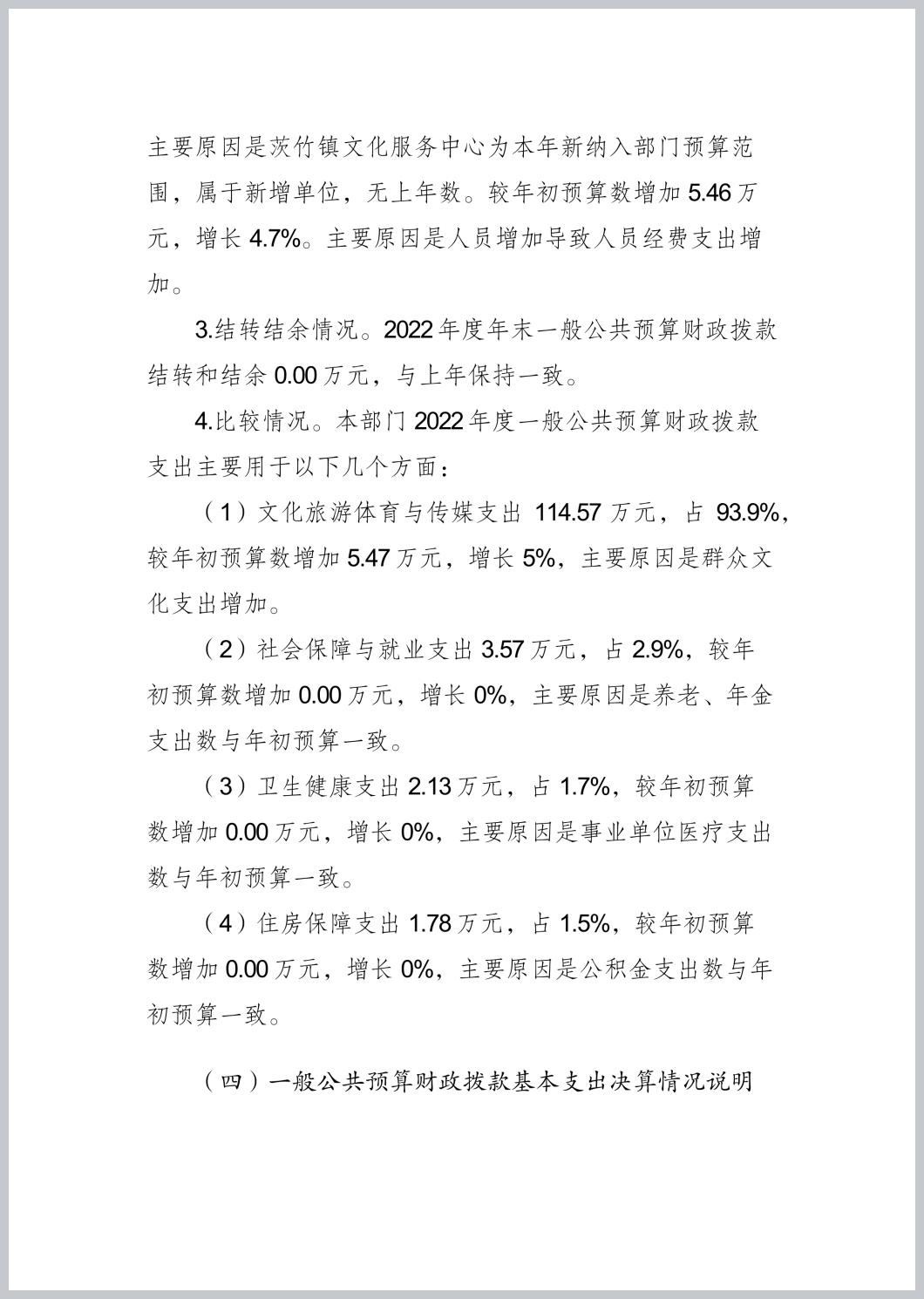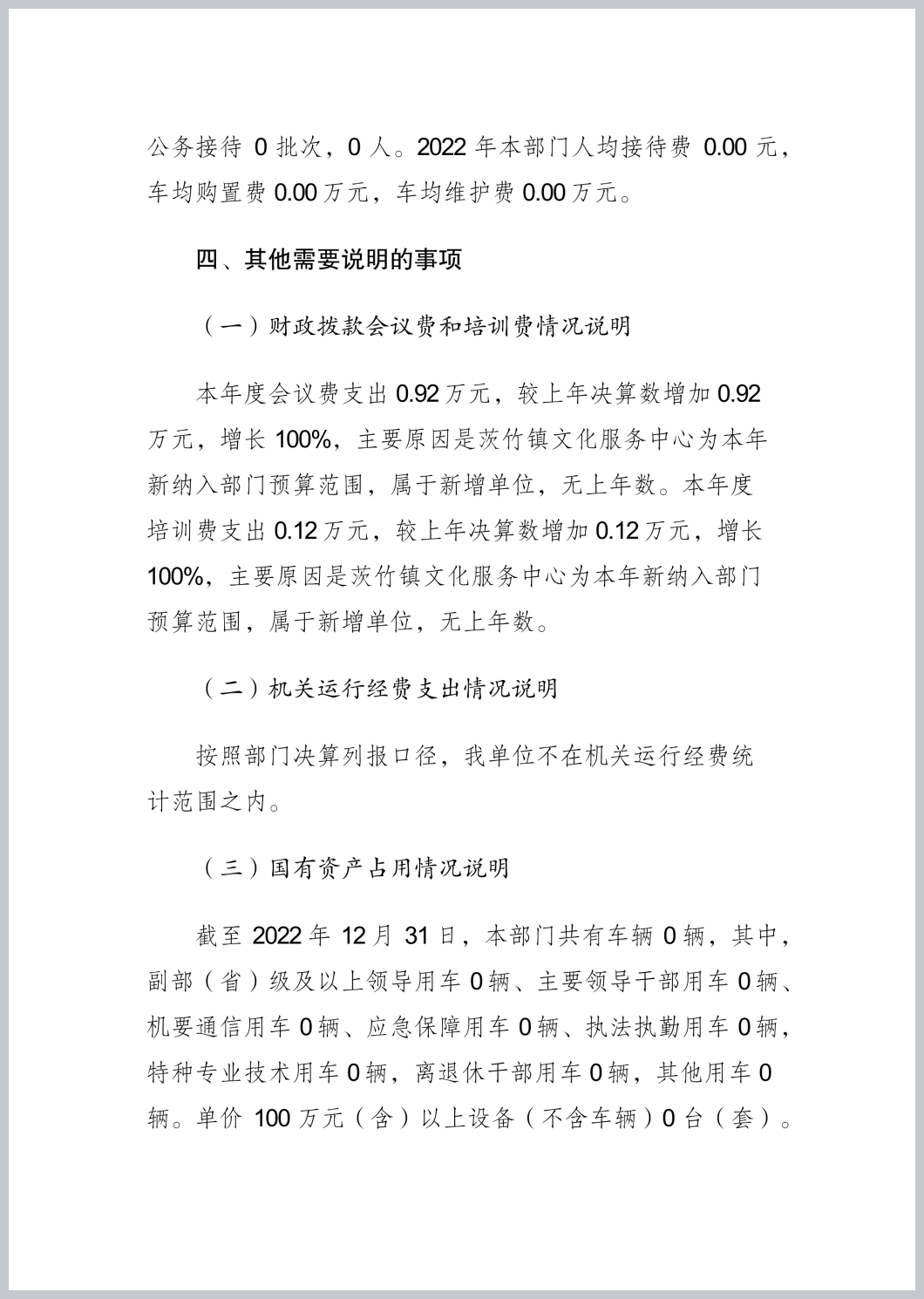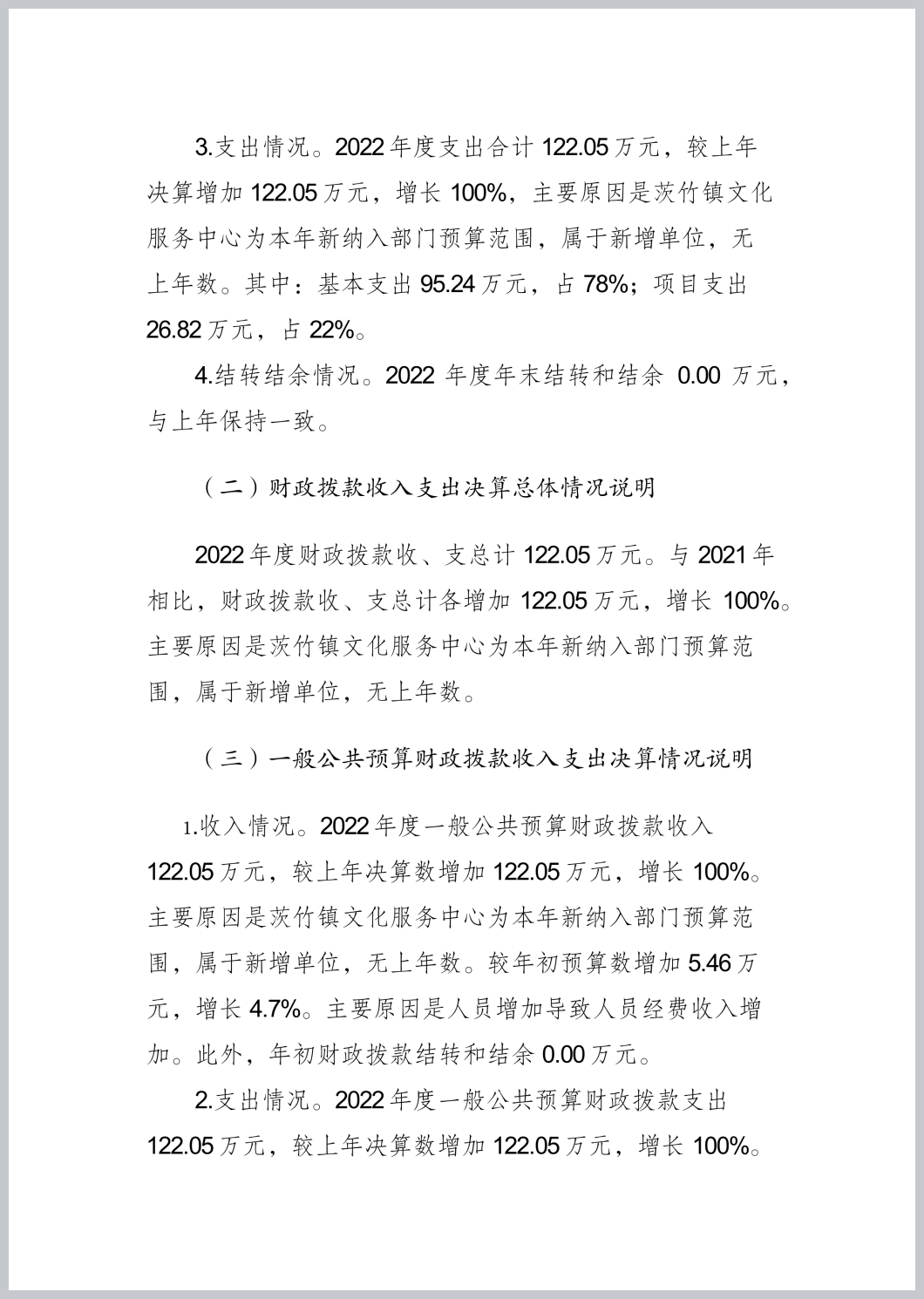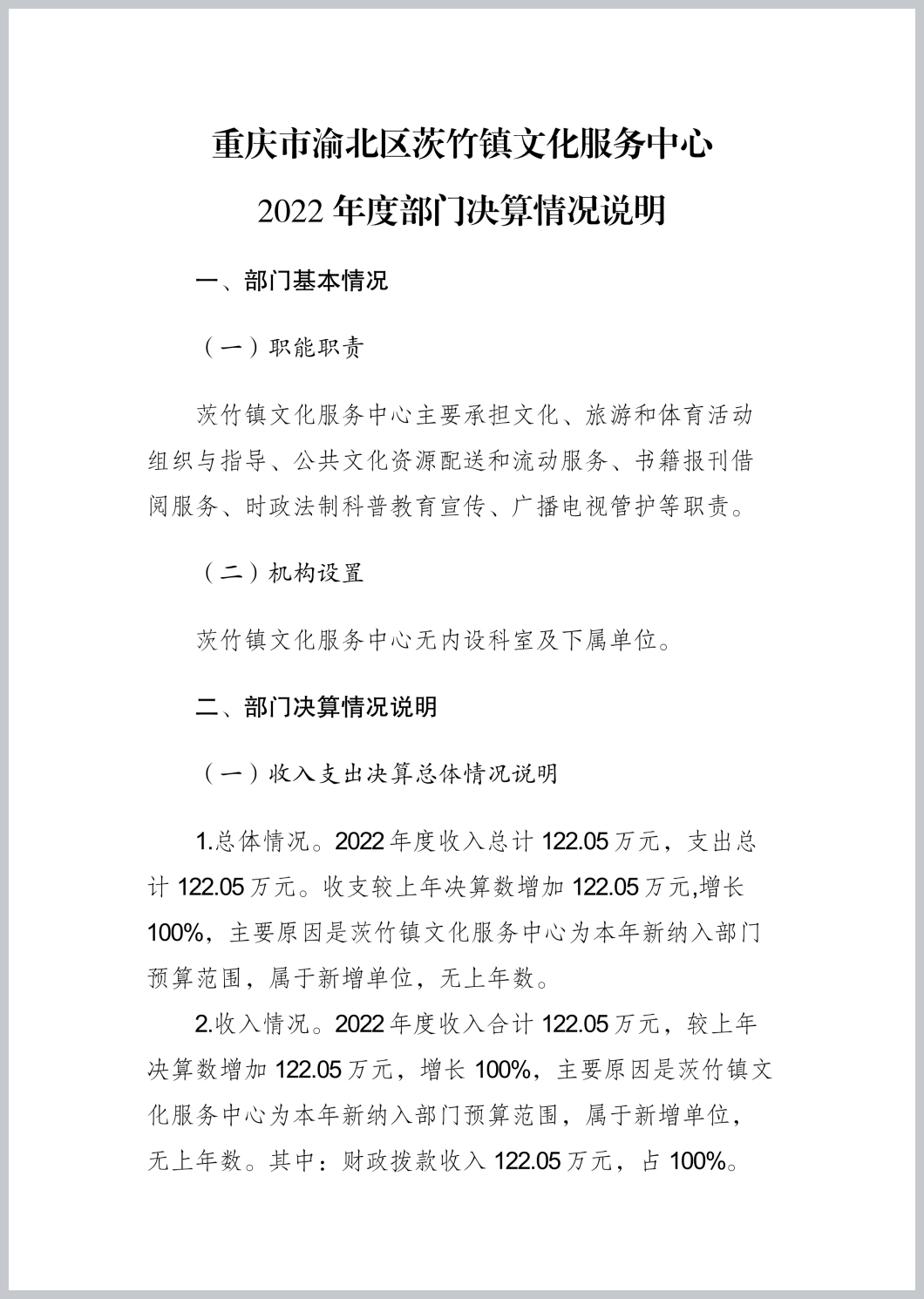 重庆市渝北区茨竹镇文化服务中心2022年部门决算公开