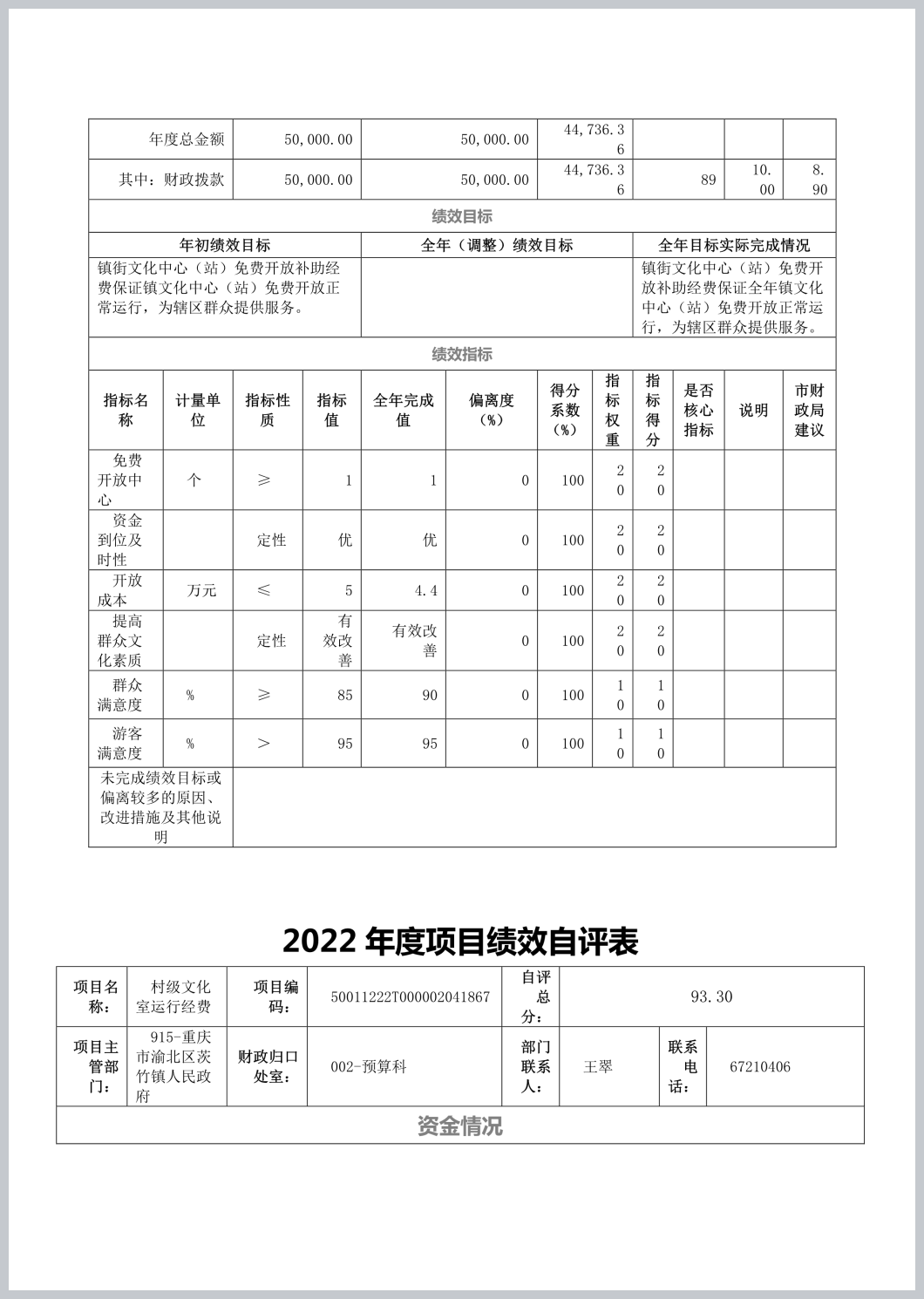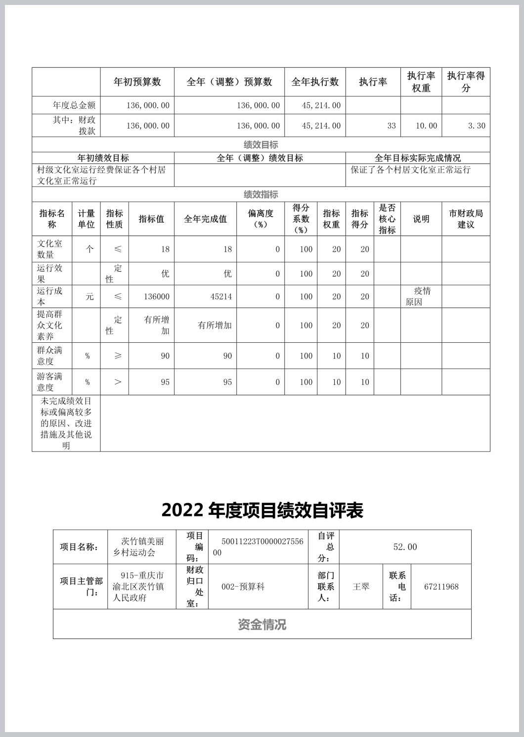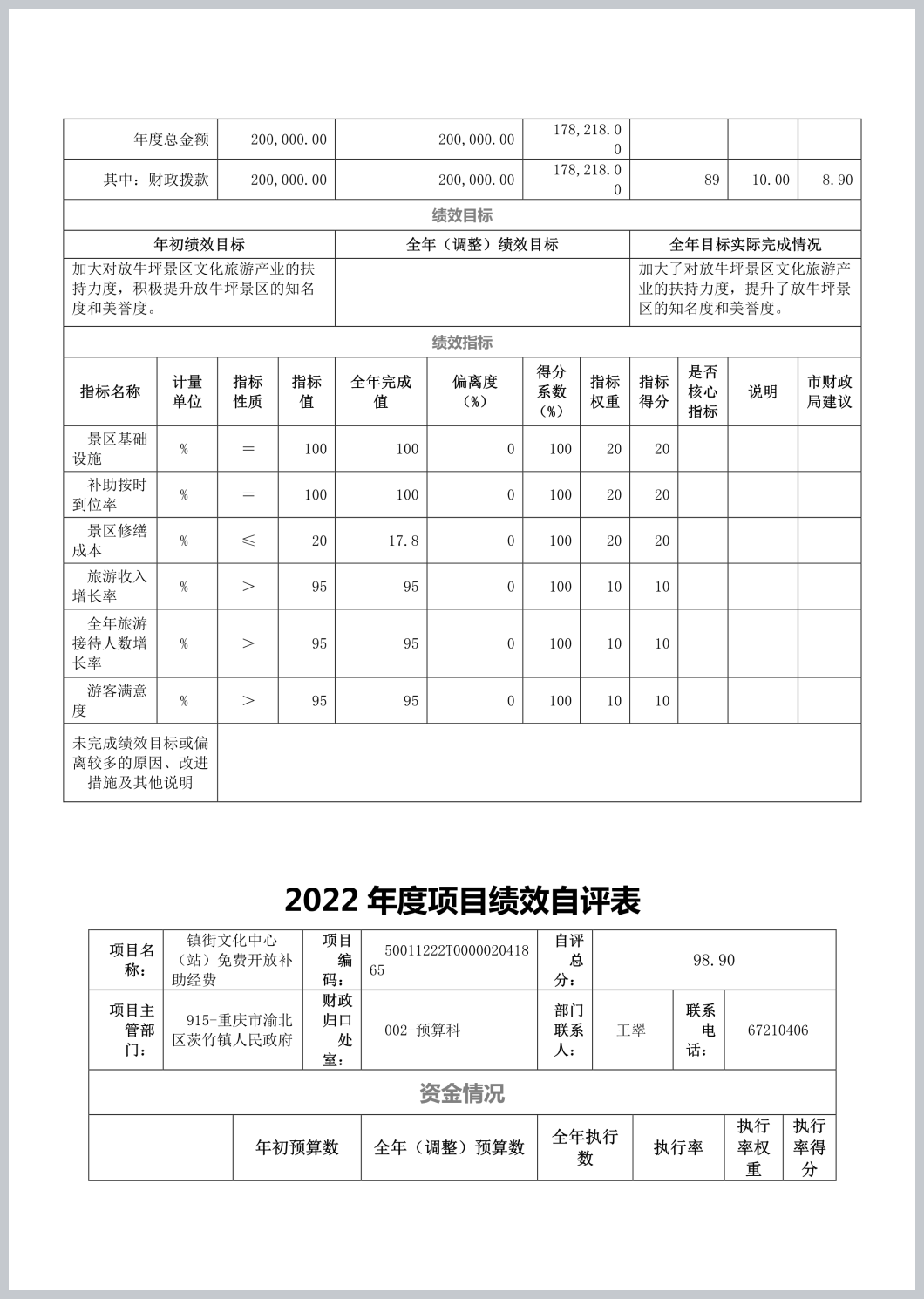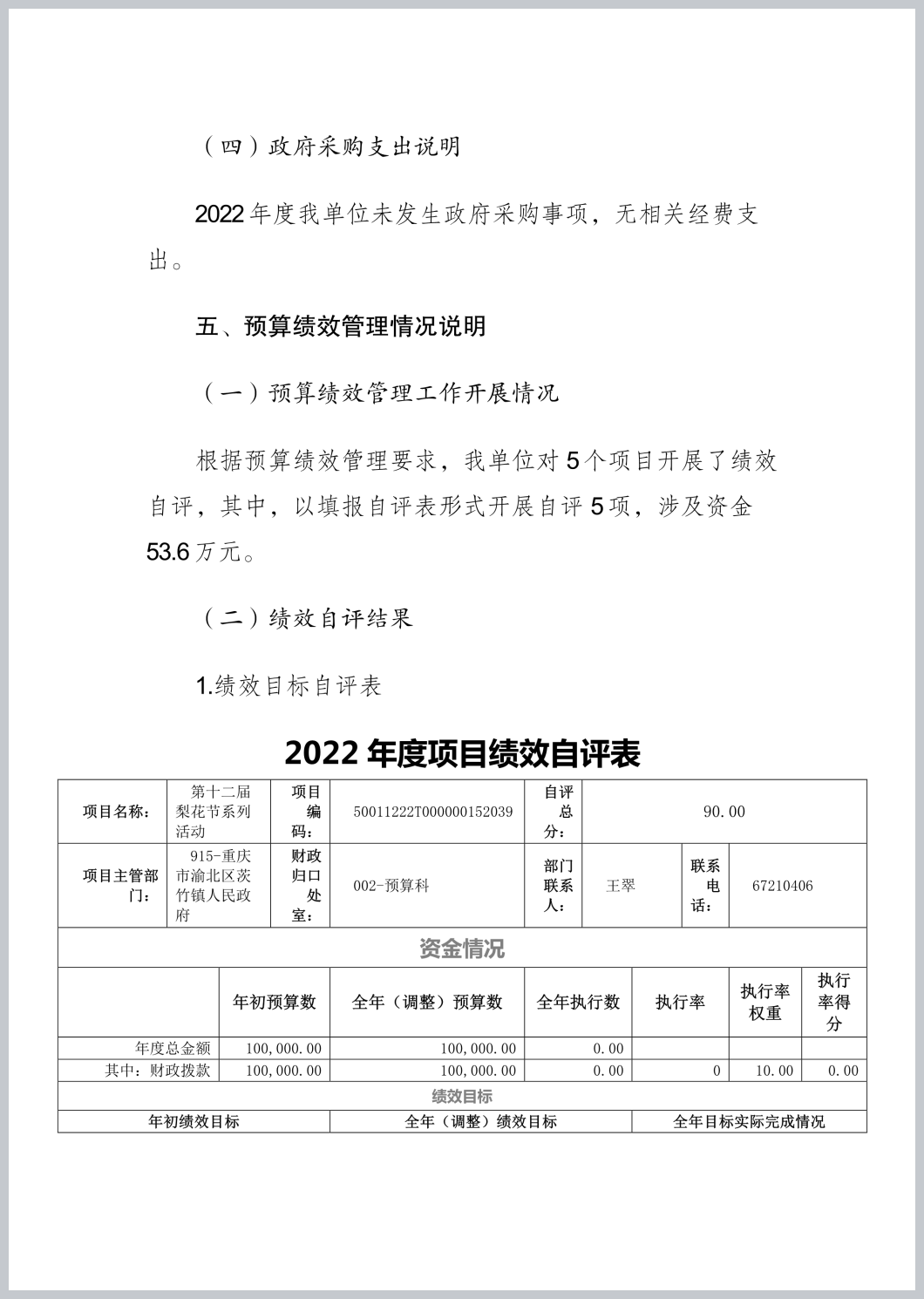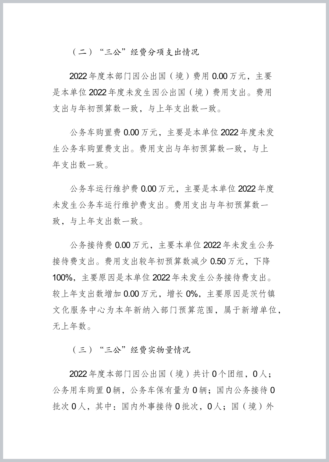 重庆市渝北区茨竹镇文化服务中心2022年部门决算公开