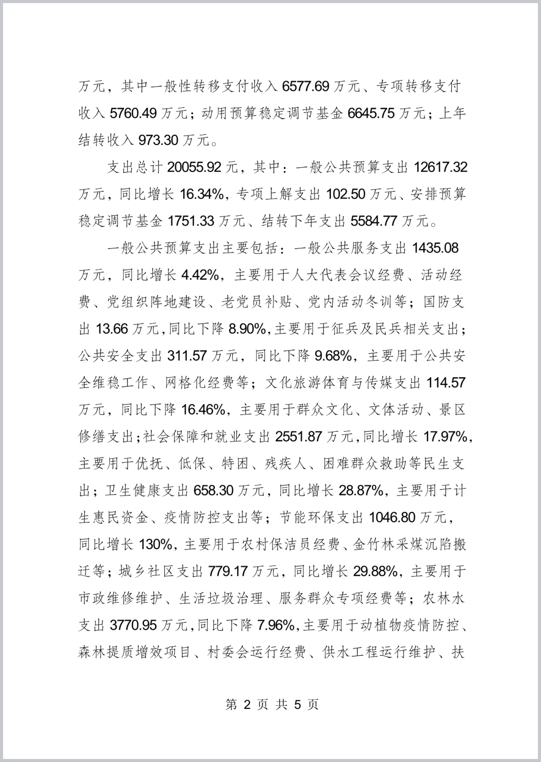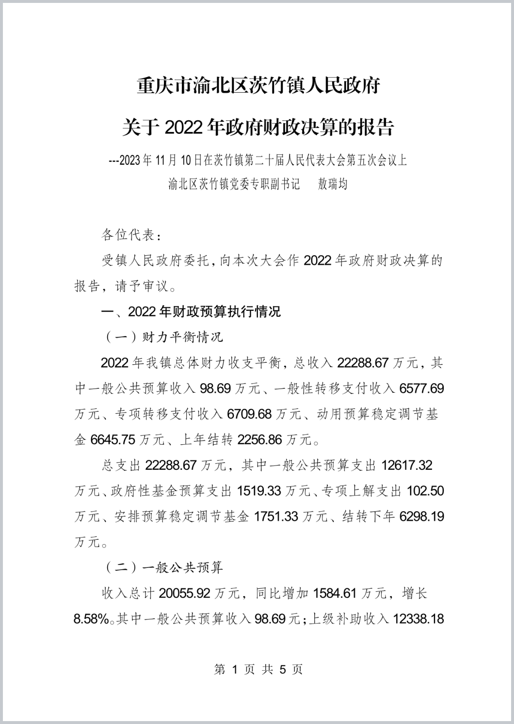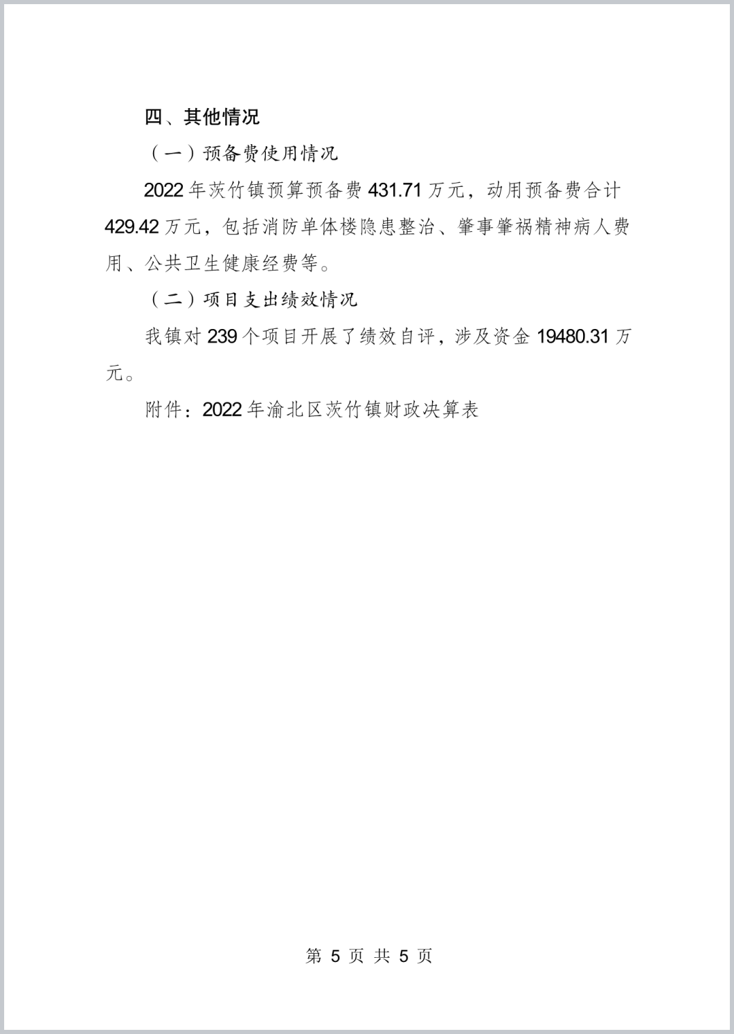 重庆市渝北区茨竹镇人民政府2022年政府决算公开