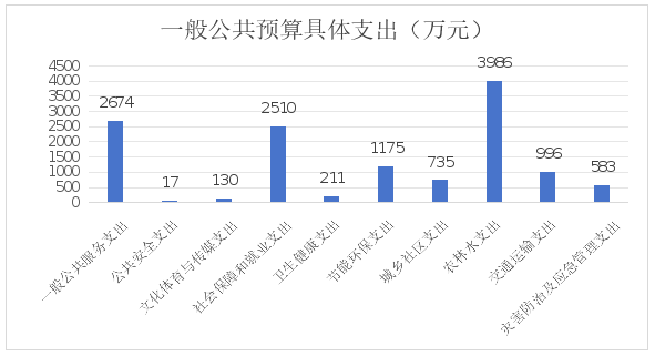 ——农林水支出3986万元、下降1%。主要为:松材线虫及森林防火支出89万元、国土绿化项目132万元、到户到人扶持资金54万元、图斑整改补助及复耕复种补助资金111万元、河长制河道常规保护费及水价补贴等23万元、供水工程48万元、农村公益事业财政奖补项目816万元等。