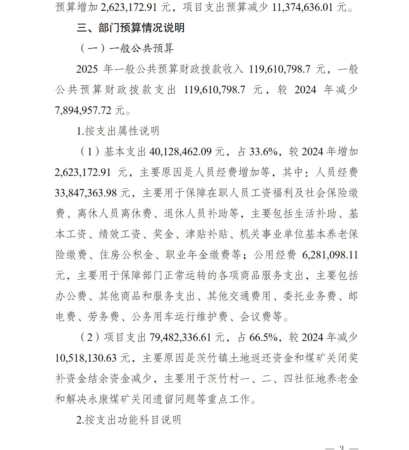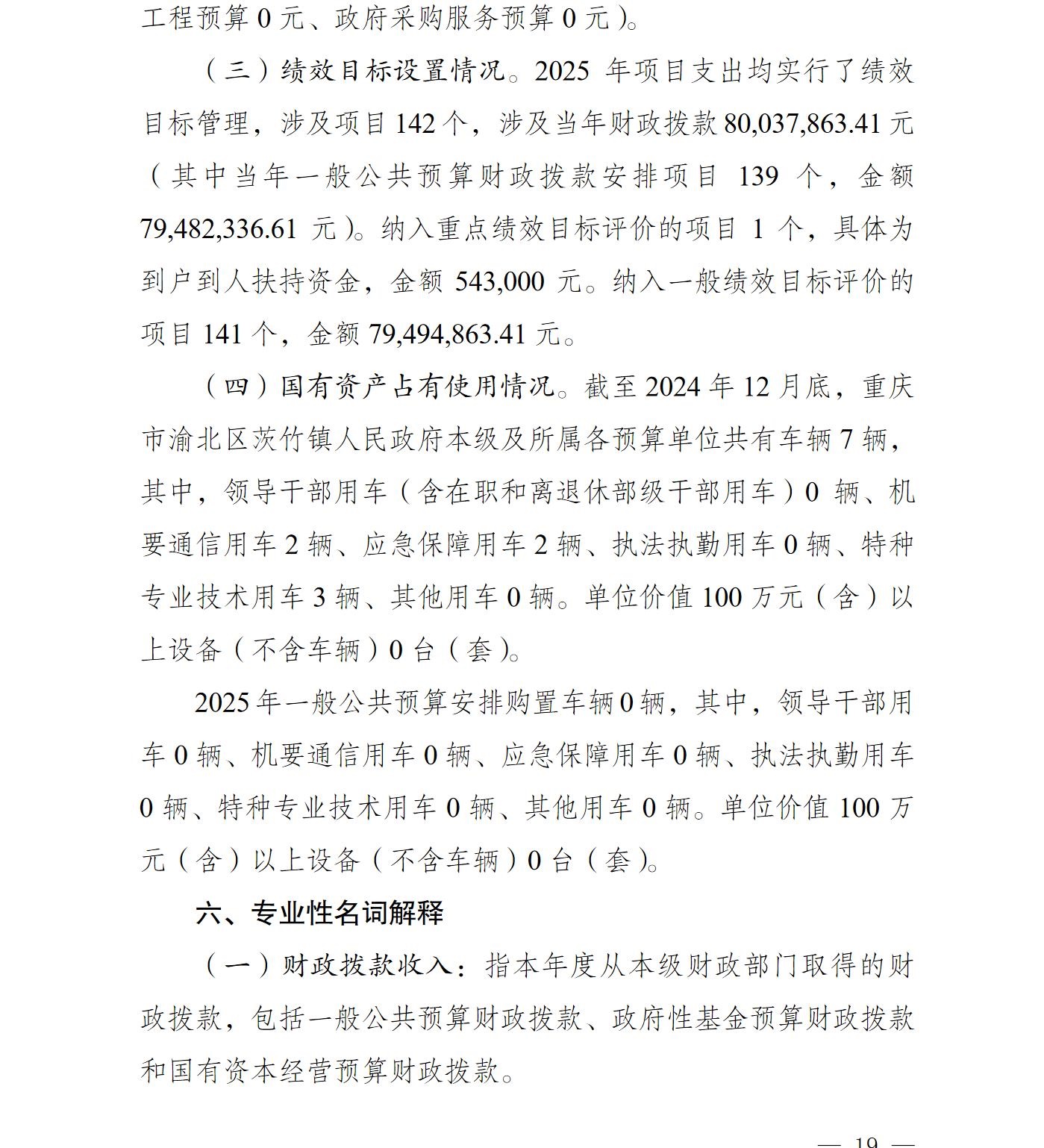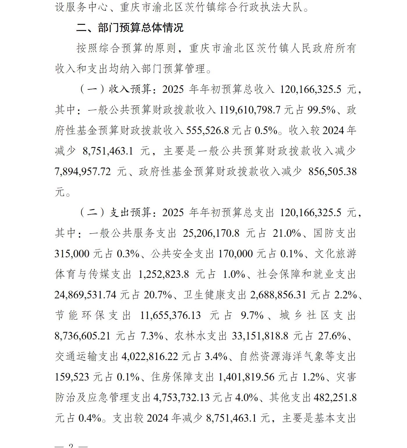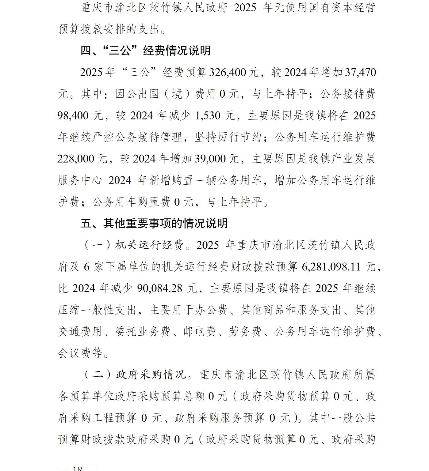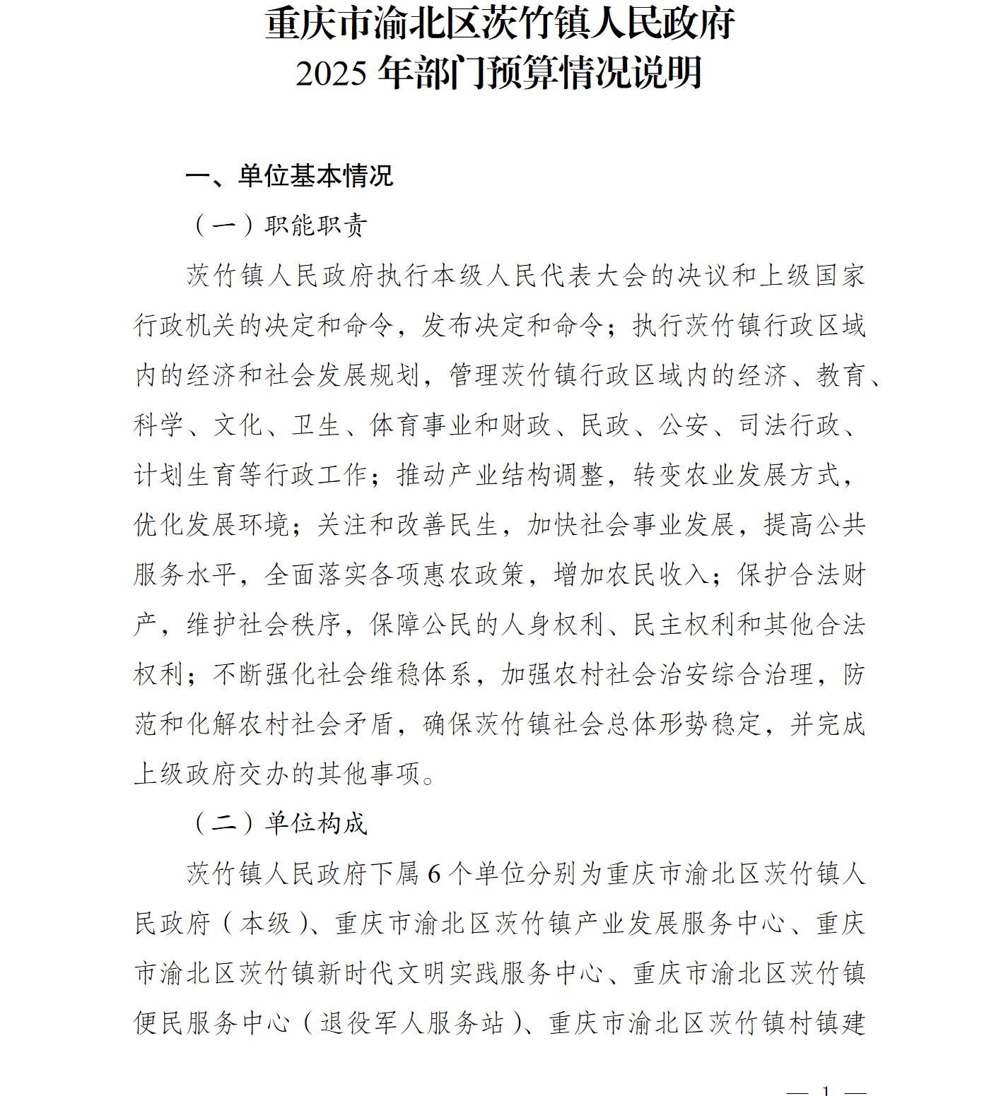 重庆市渝北区茨竹镇人民政府2025年部门预算情况说明