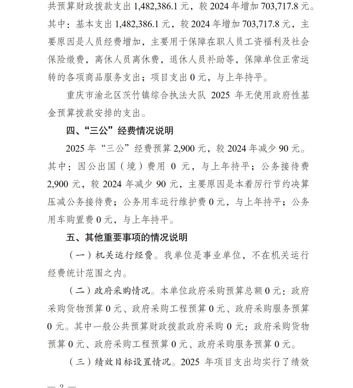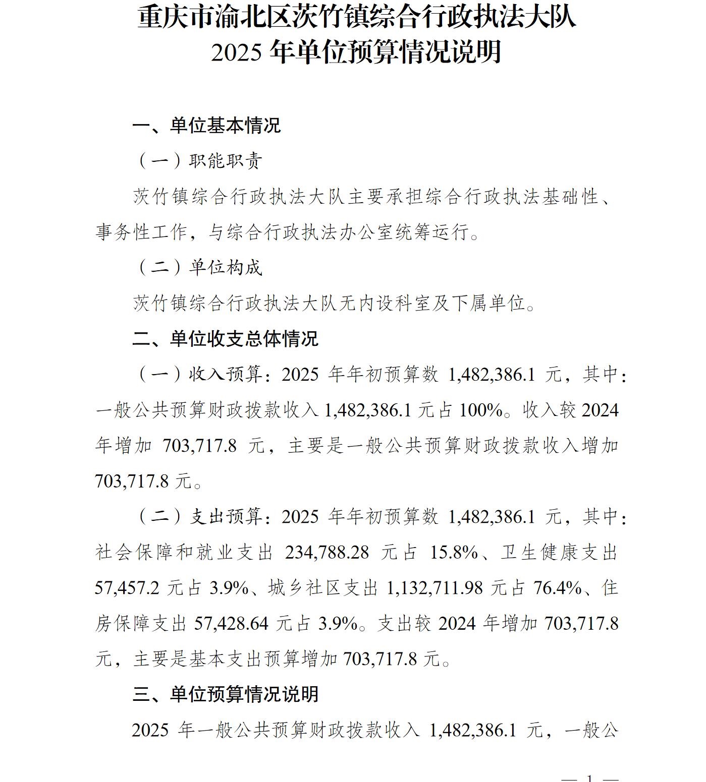重庆市渝北区茨竹镇综合执法大队2025年单位预算情况说明