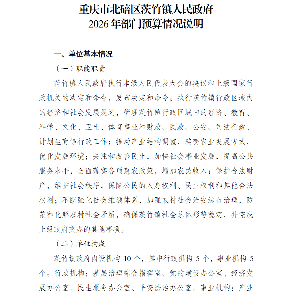 重庆市北碚区茨竹镇人民政府2026年部门预算情况说明