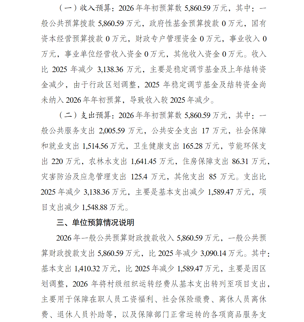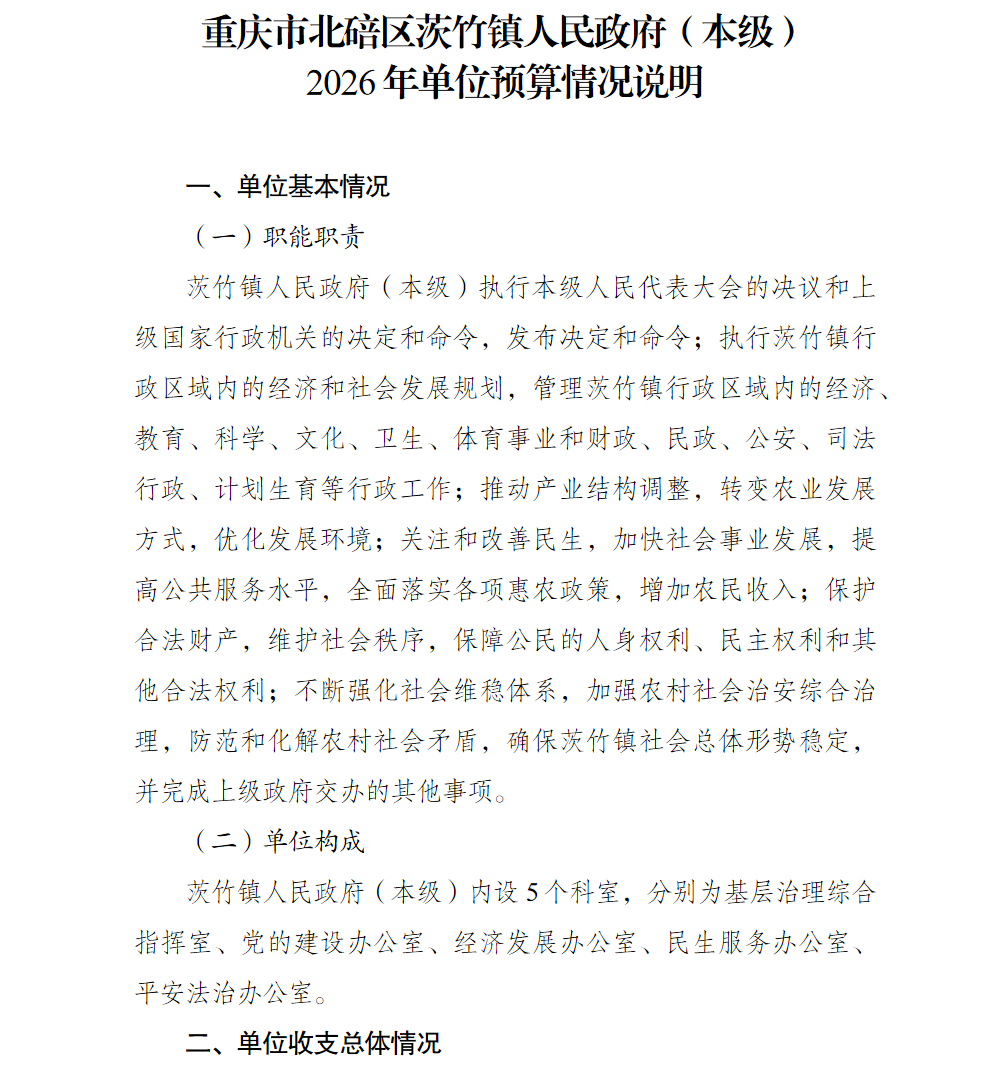 重庆市北碚区茨竹镇人民政府(本级)2026年单位预算情况说明