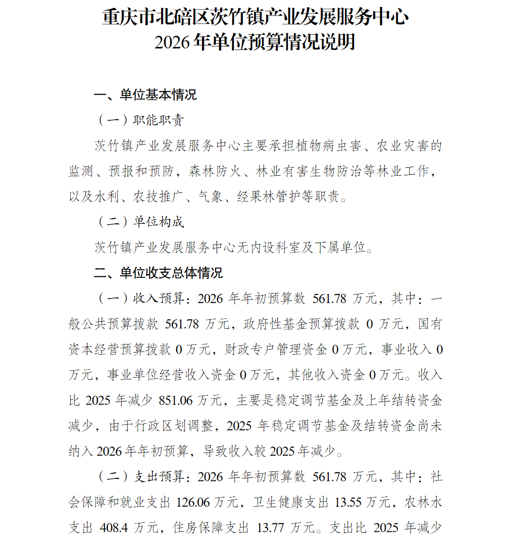 重庆市北碚区茨竹镇产业发展服务中心2026年单位预算情况说明及附表.pdf