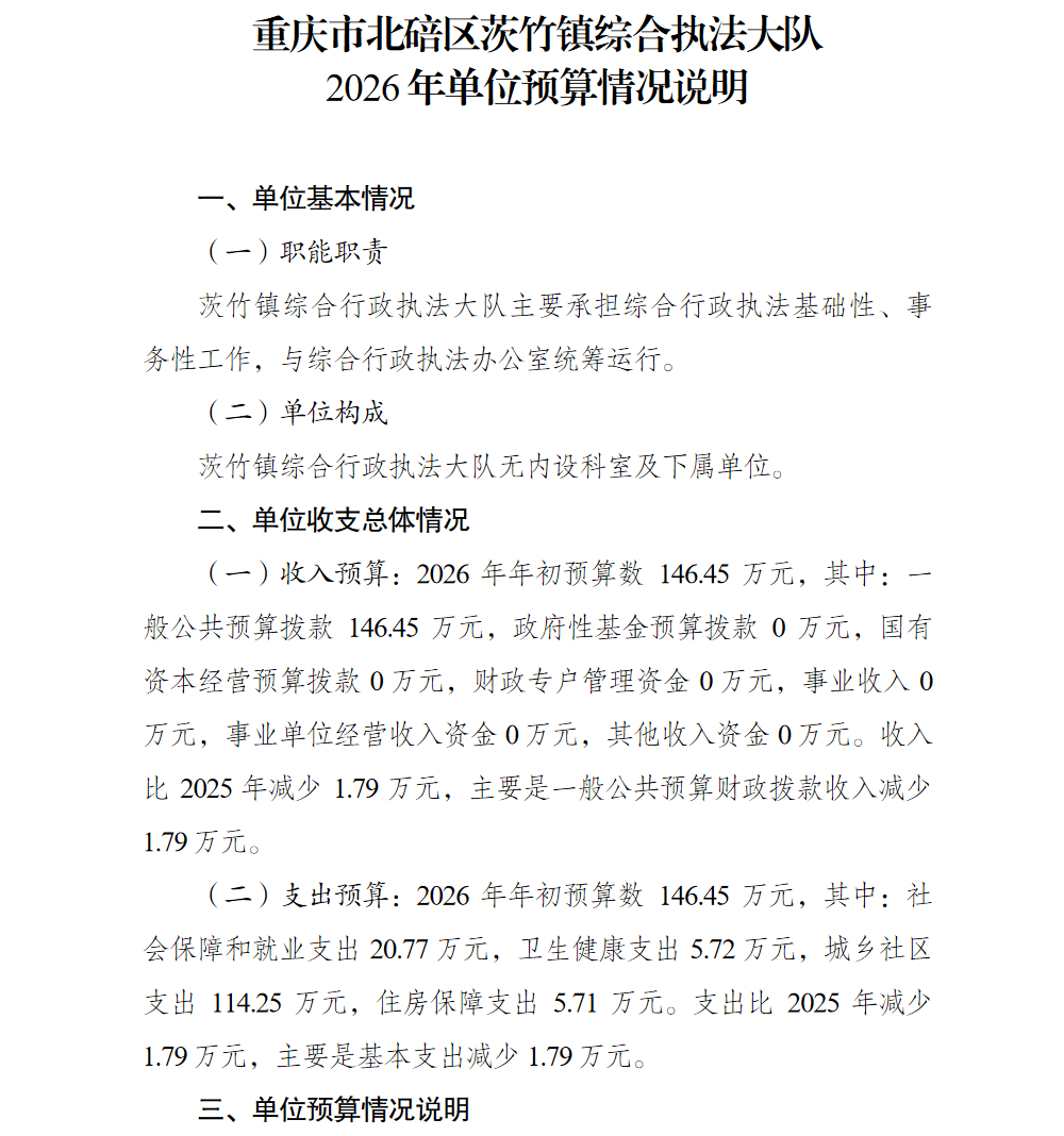 重庆市北碚区茨竹镇综合执法大队2026年单位预算情况说明及附表.pdf