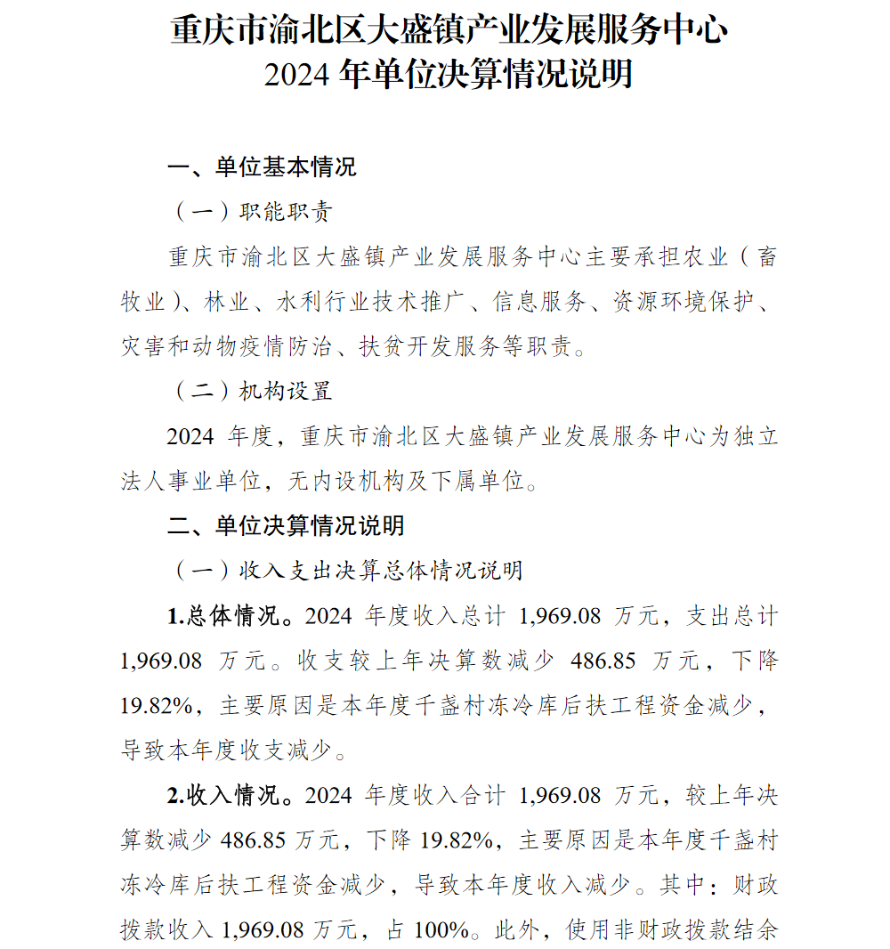 重庆市渝北区大盛镇产业发展服务中心2024年单位决算情况说明