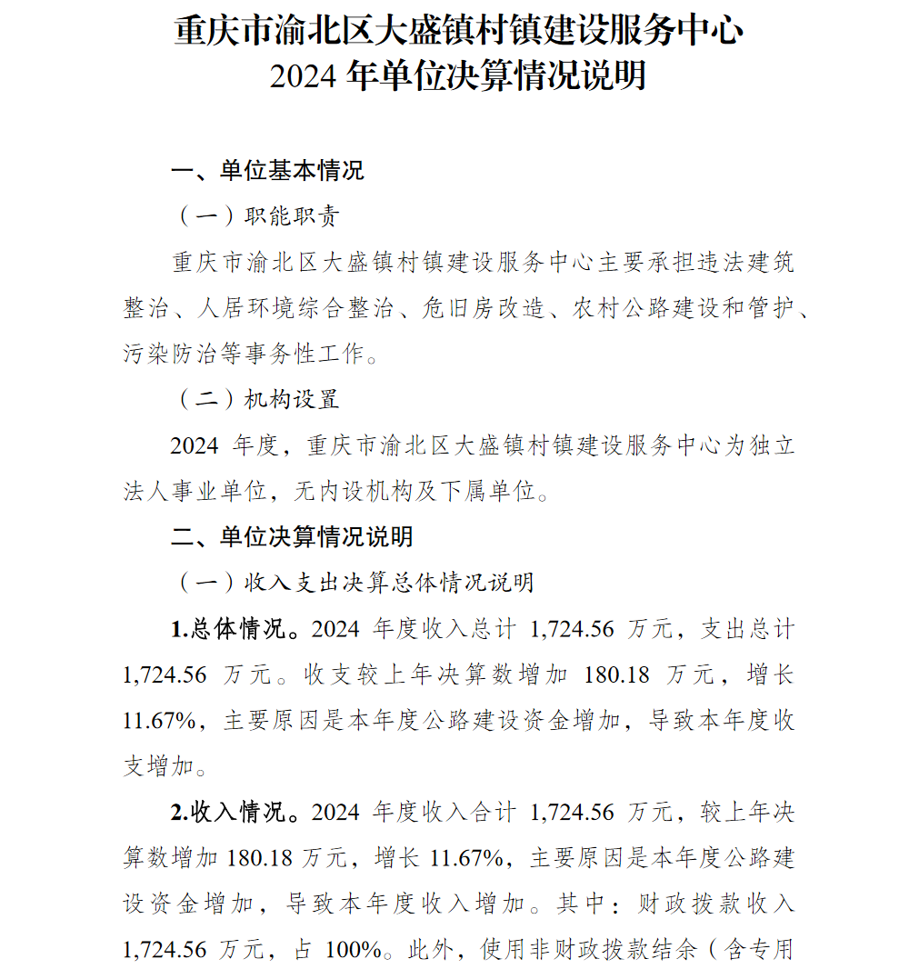 重庆市渝北区大盛镇村镇建设服务中心2024年单位决算情况说明