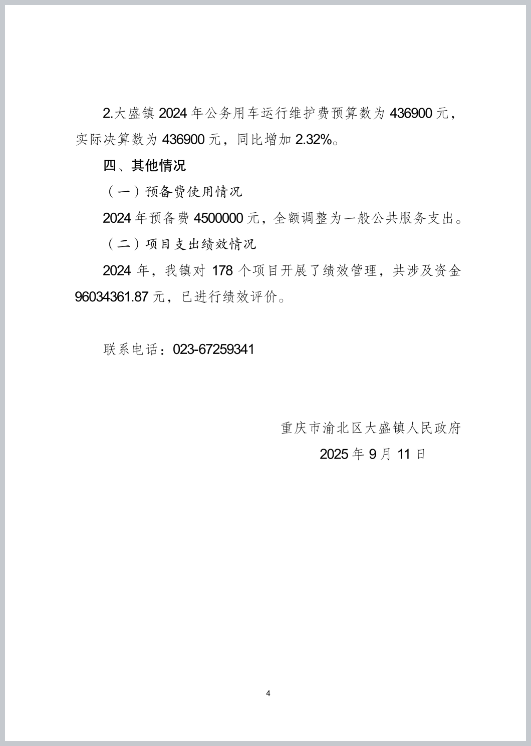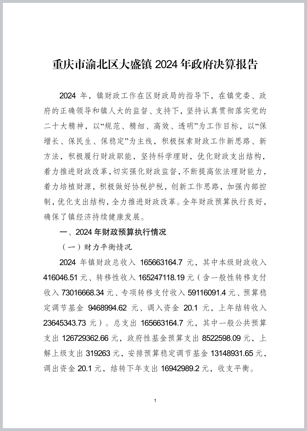 重庆市渝北区大盛镇人民政府2024年政府决算公开