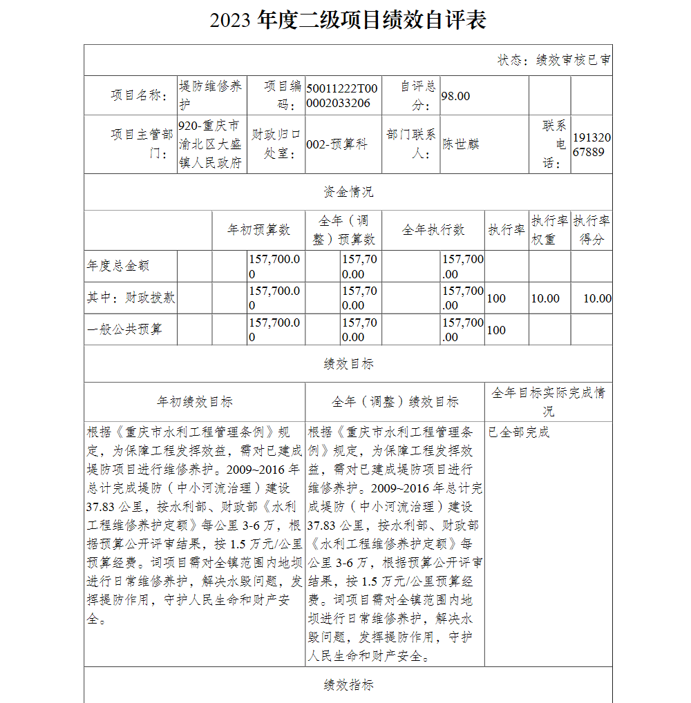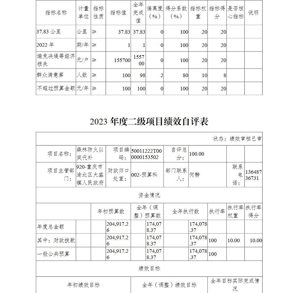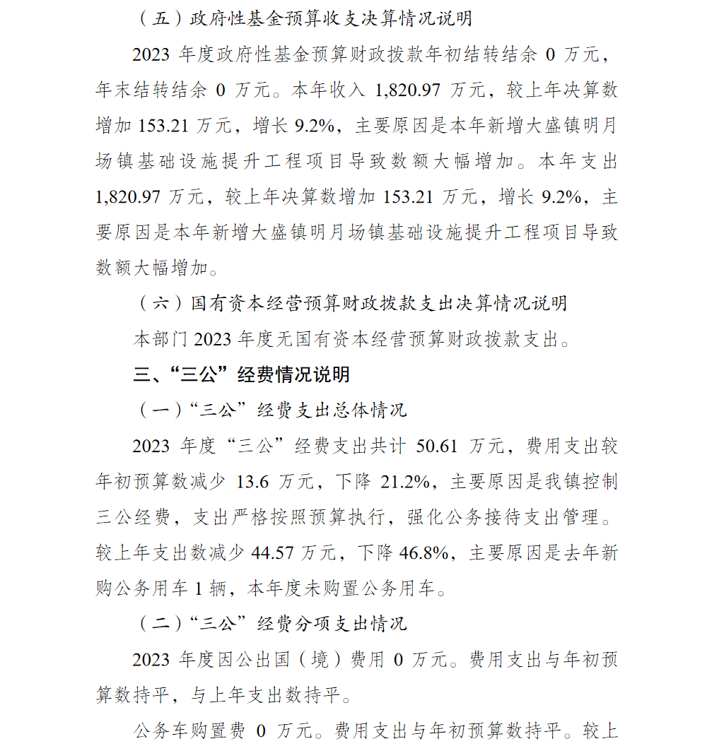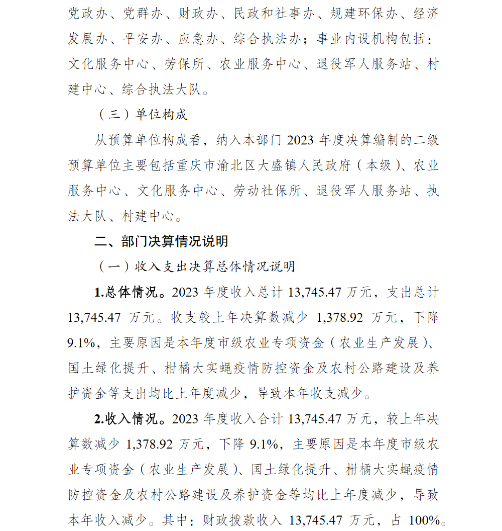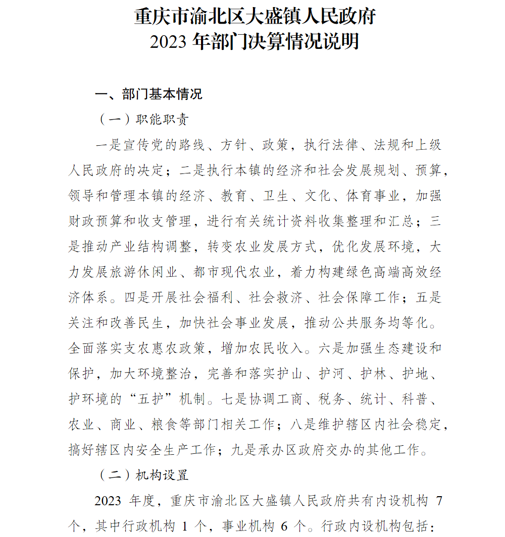 重庆市渝北区大盛镇人民政府2023年部门决算公开