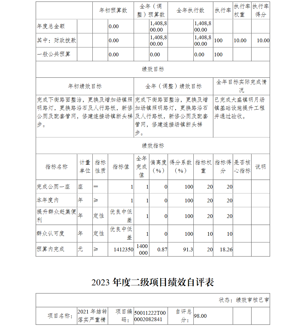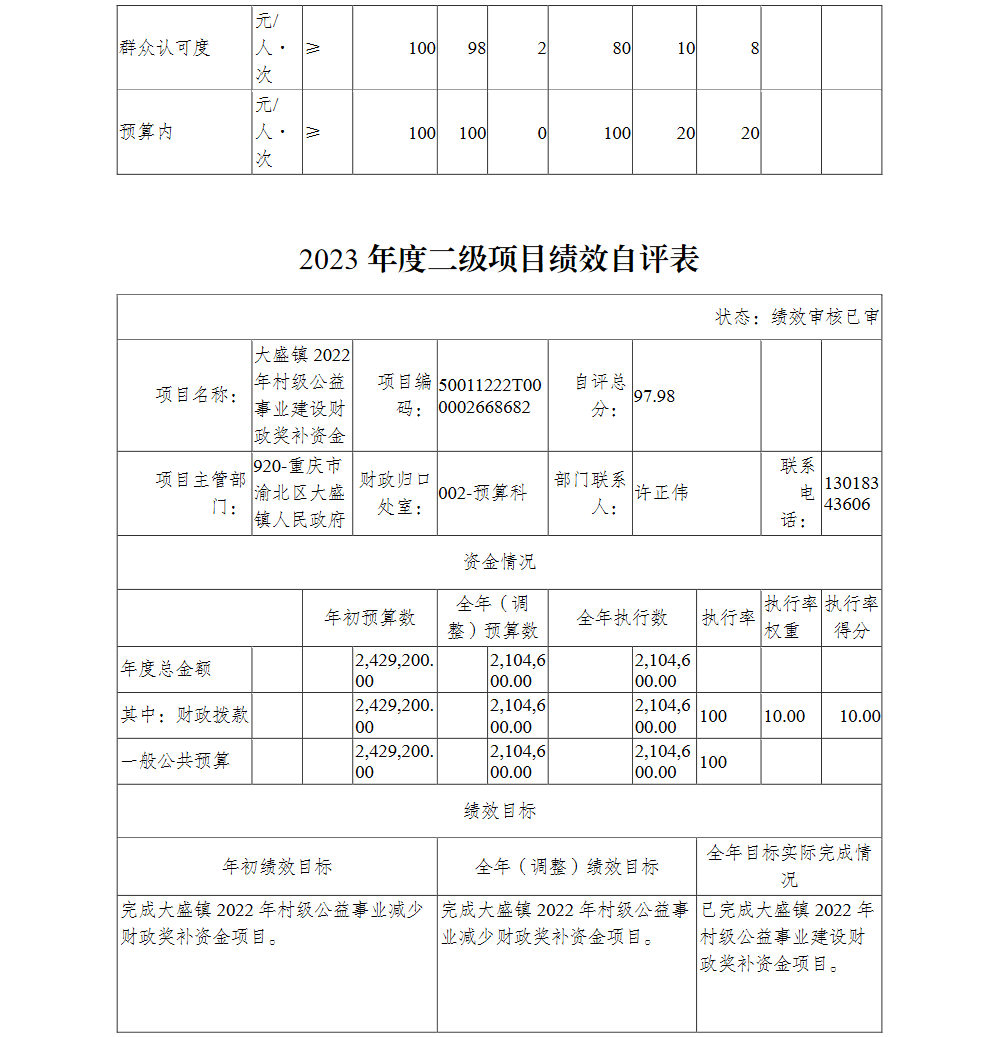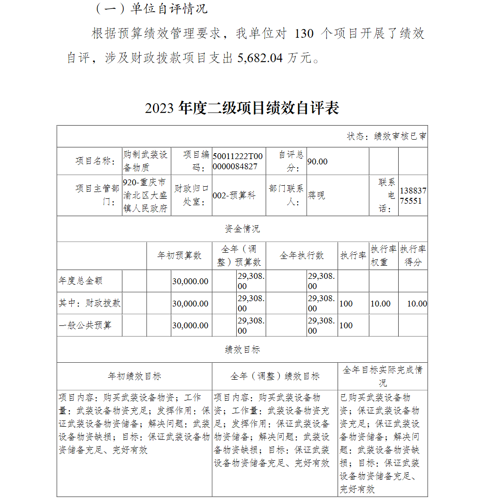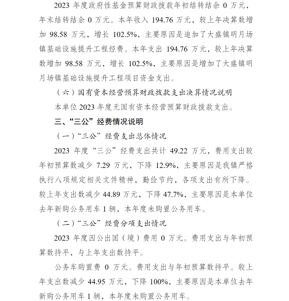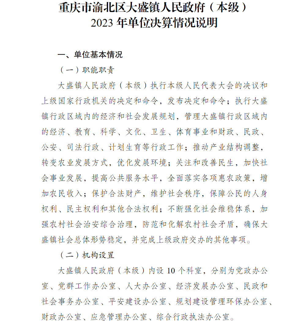 重庆市渝北区大盛镇人民政府(本级)2023年部门决算公开