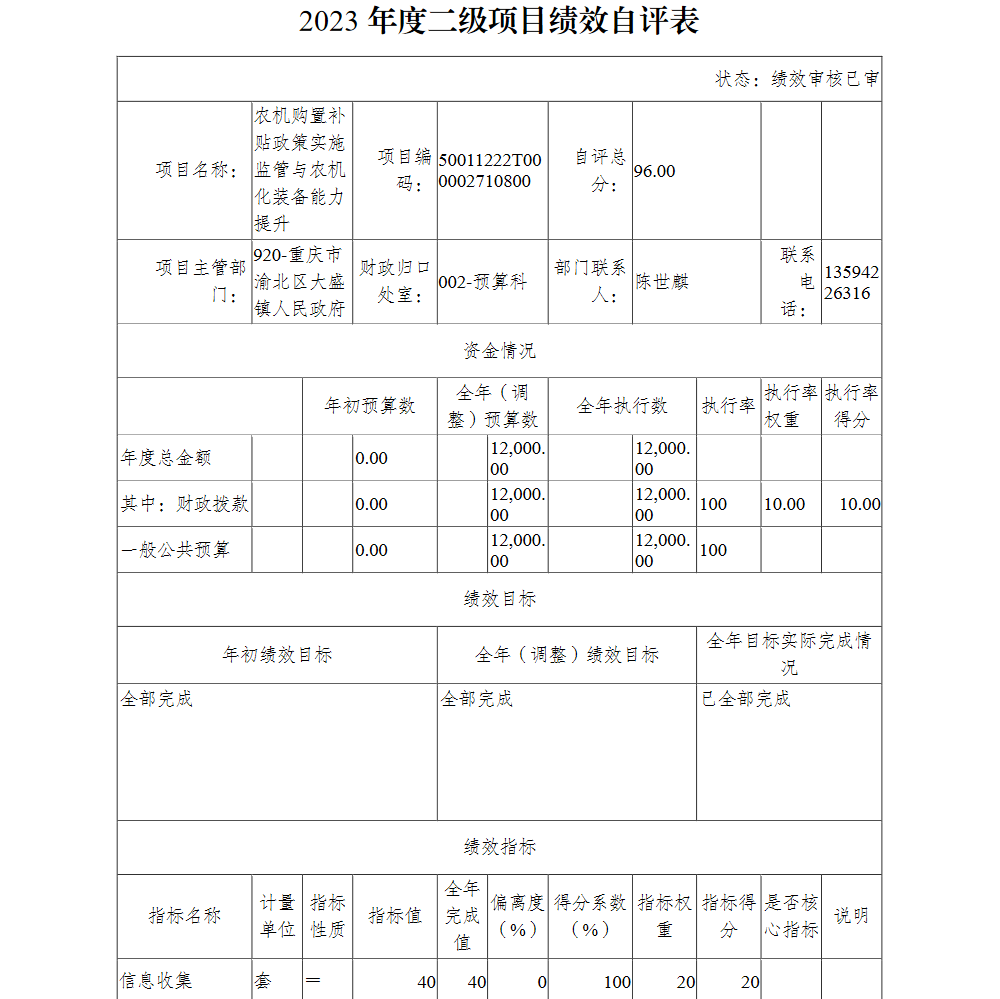 重庆市渝北区大盛镇农业服务中心2023年部门决算公开