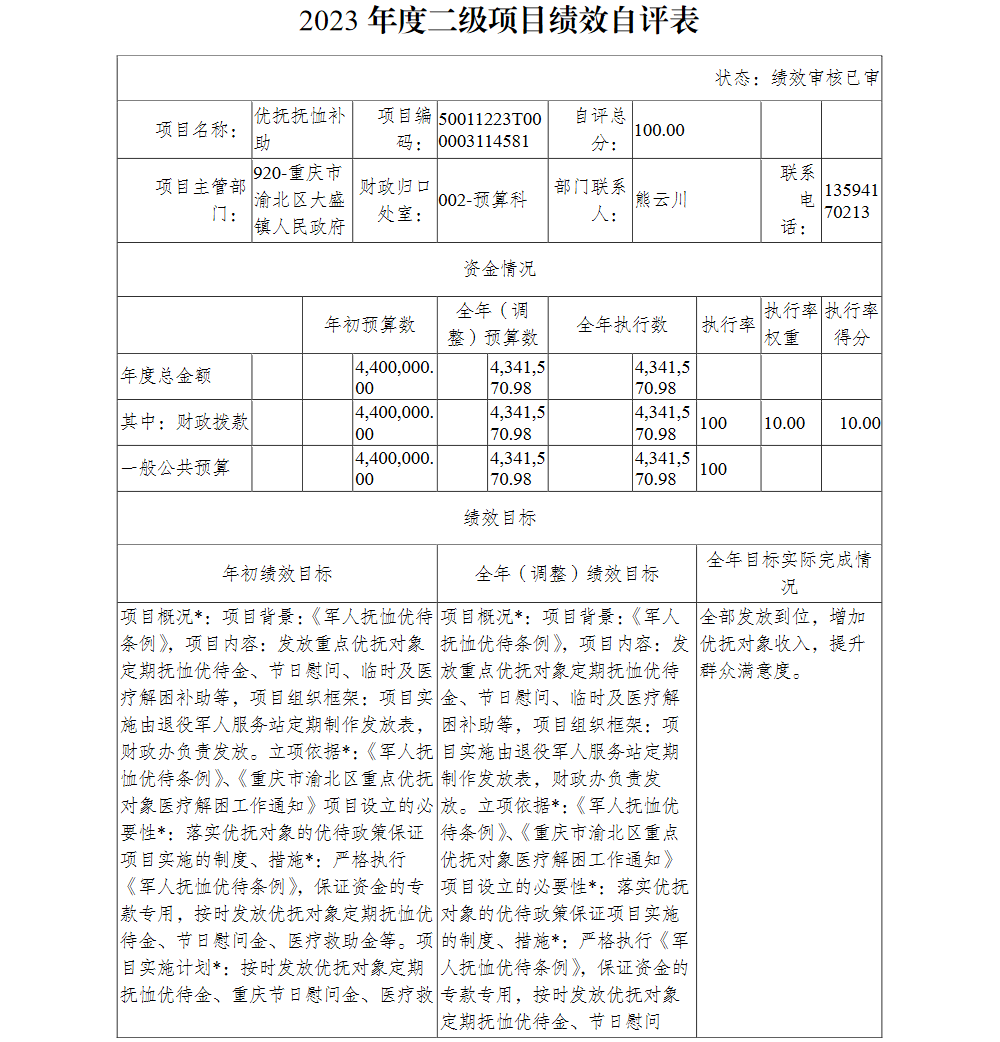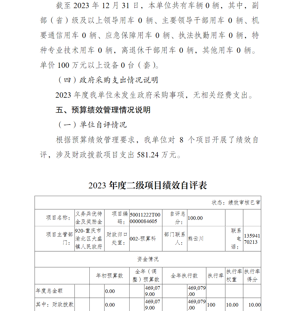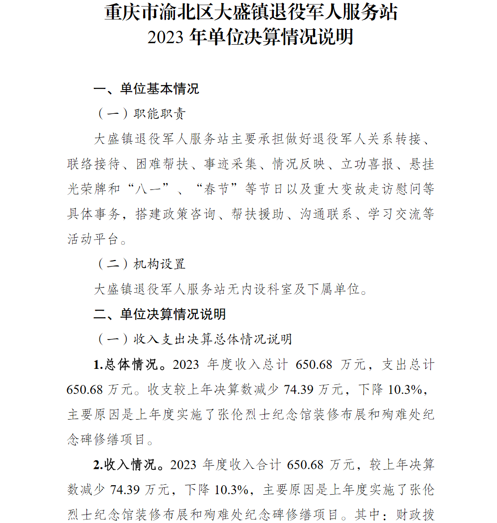 重庆市渝北区大盛镇退役军人服务站2023年部门决算公开