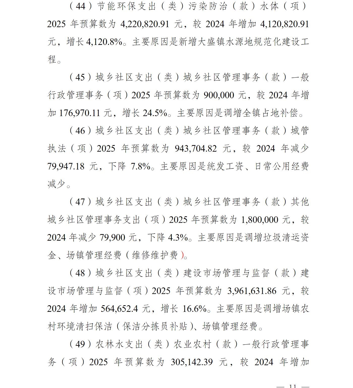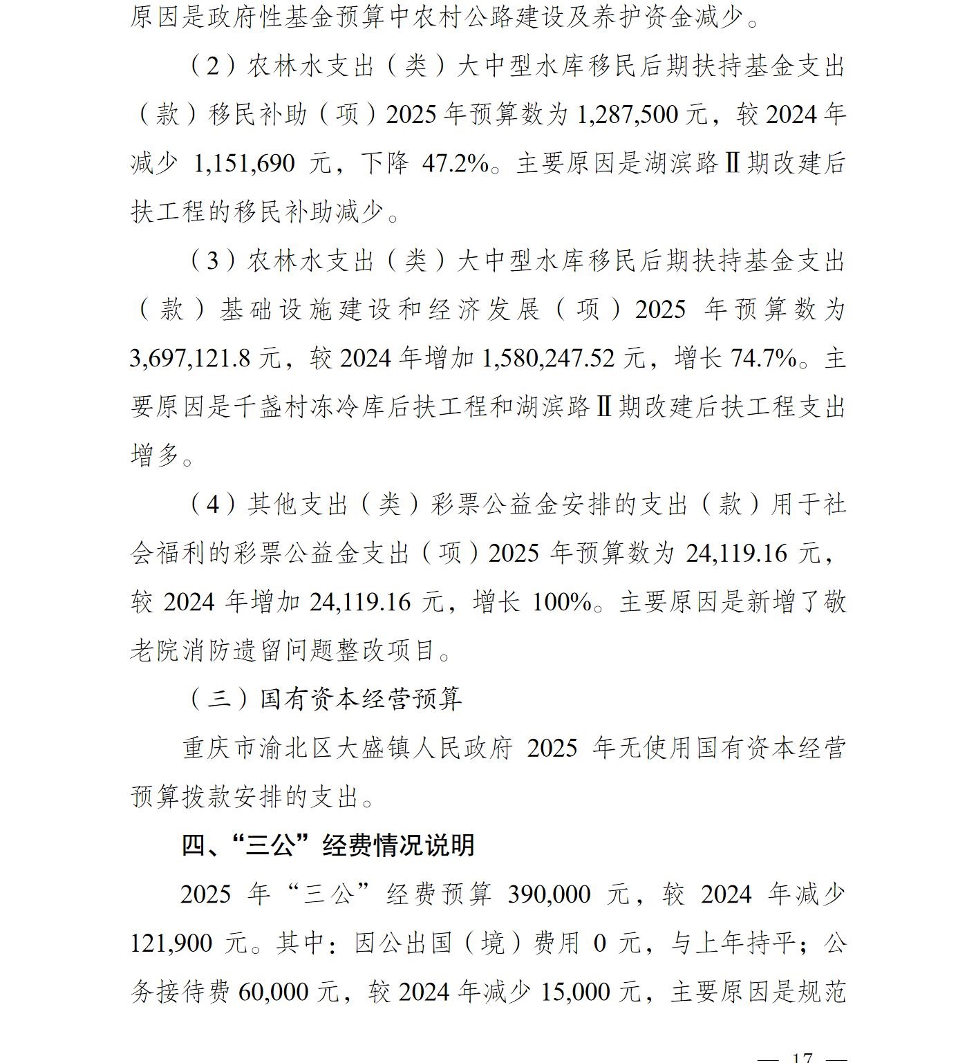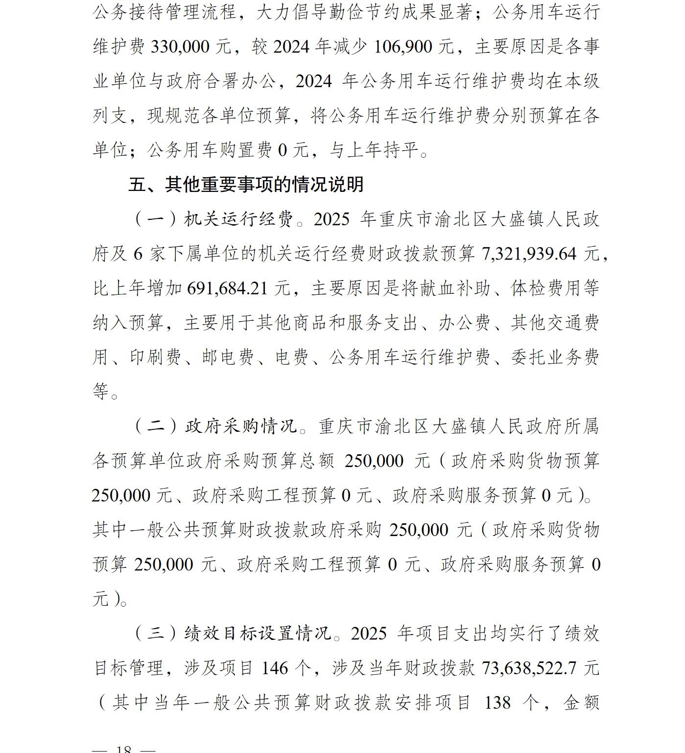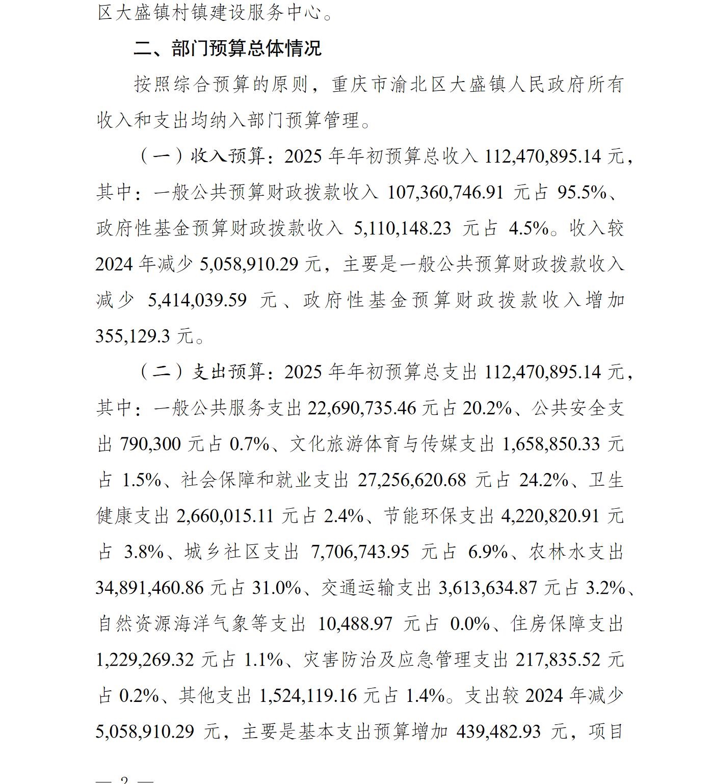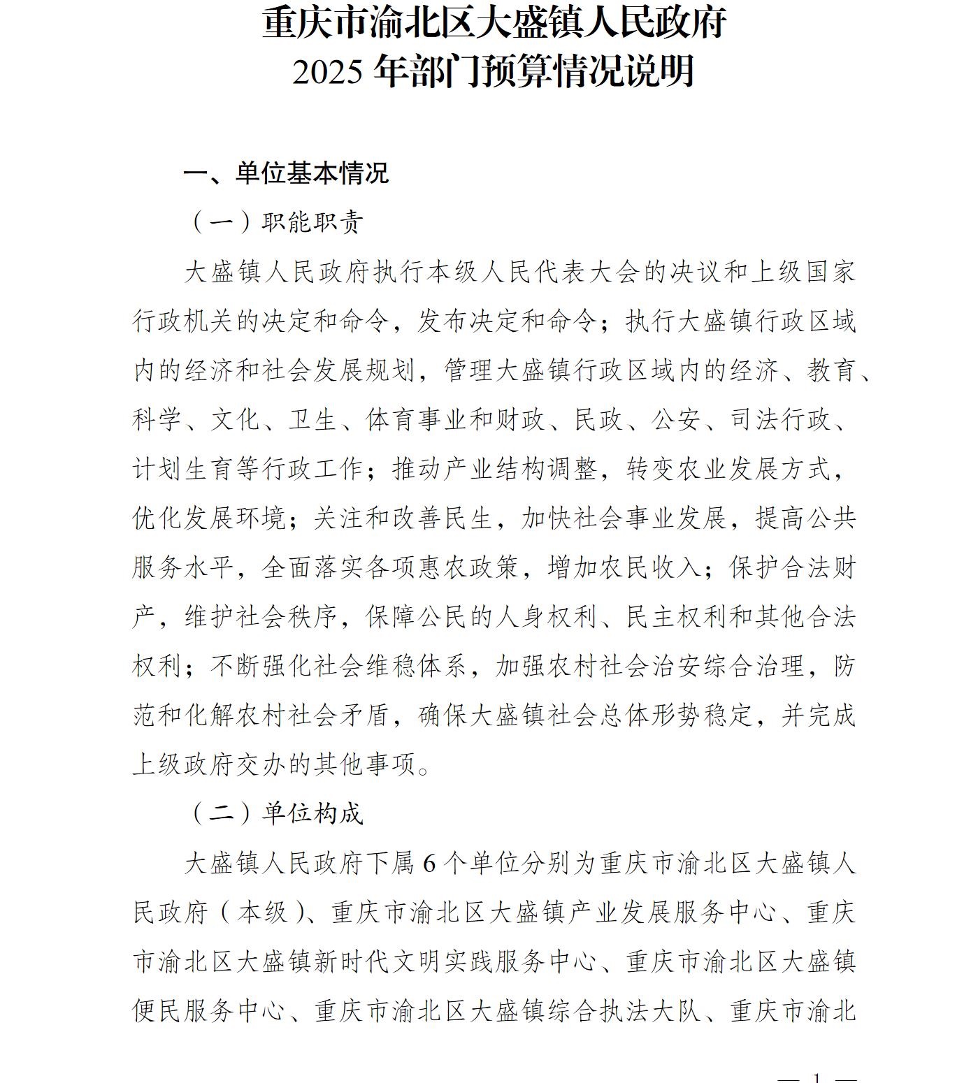 重庆市渝北区大盛镇人民政府2025年部门预算情况说明