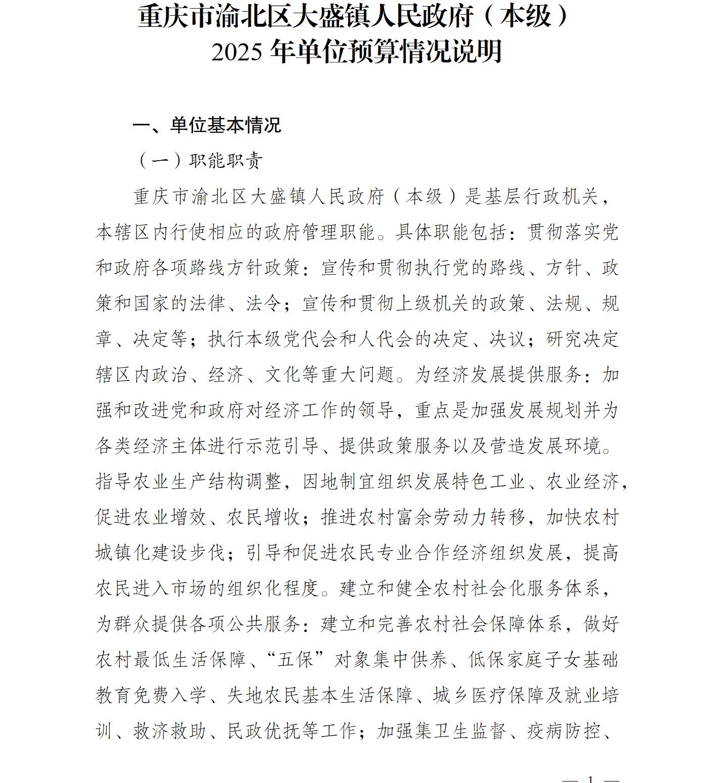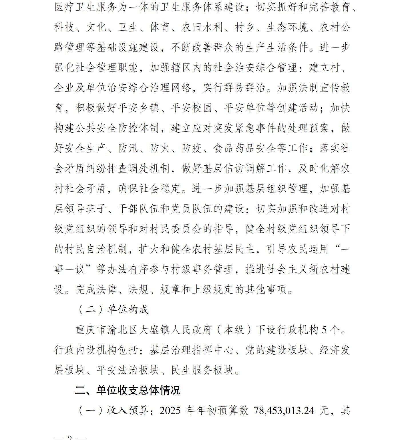 重庆市渝北区大盛镇人民政府(本级)2025年单位预算情况说明