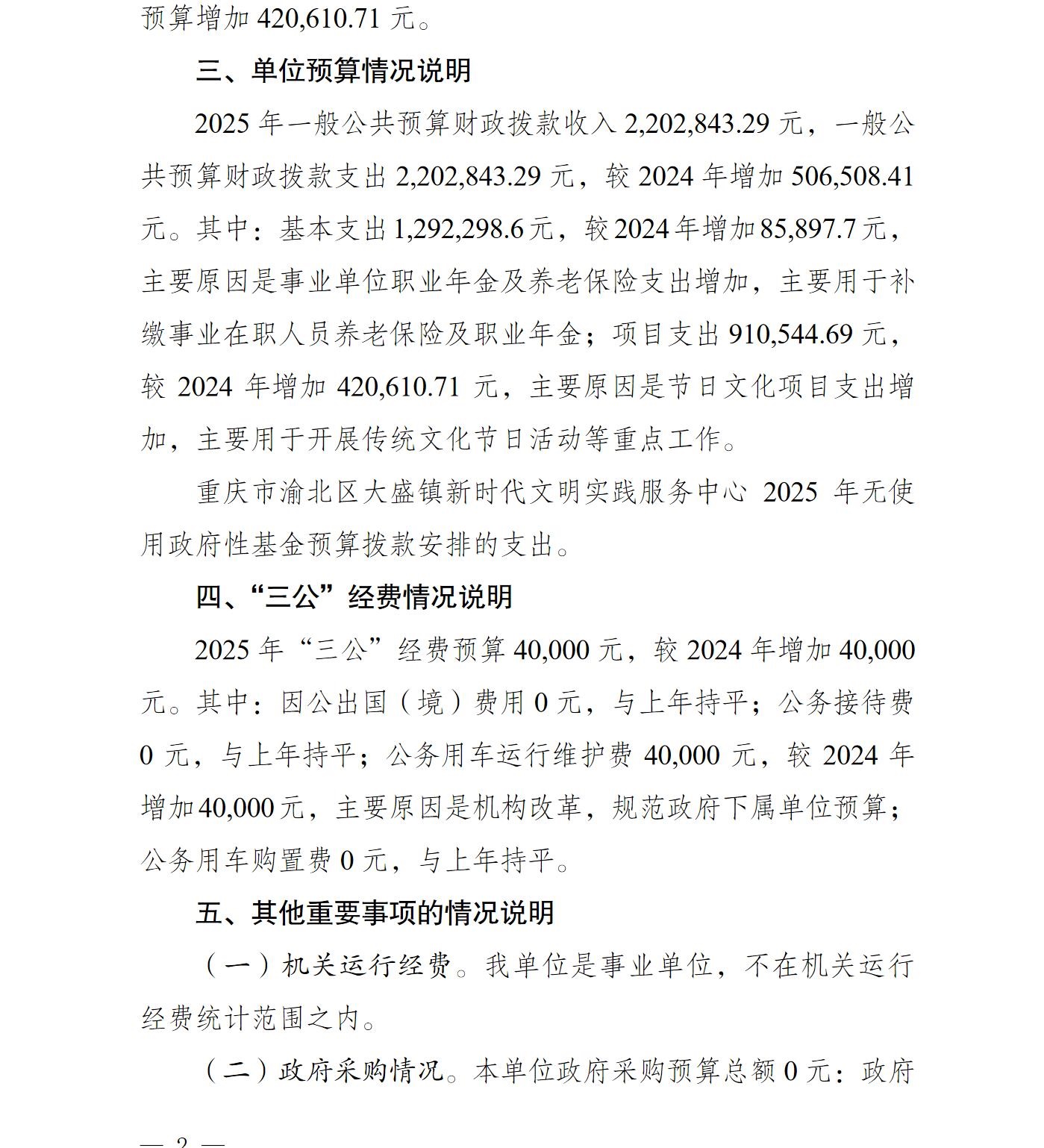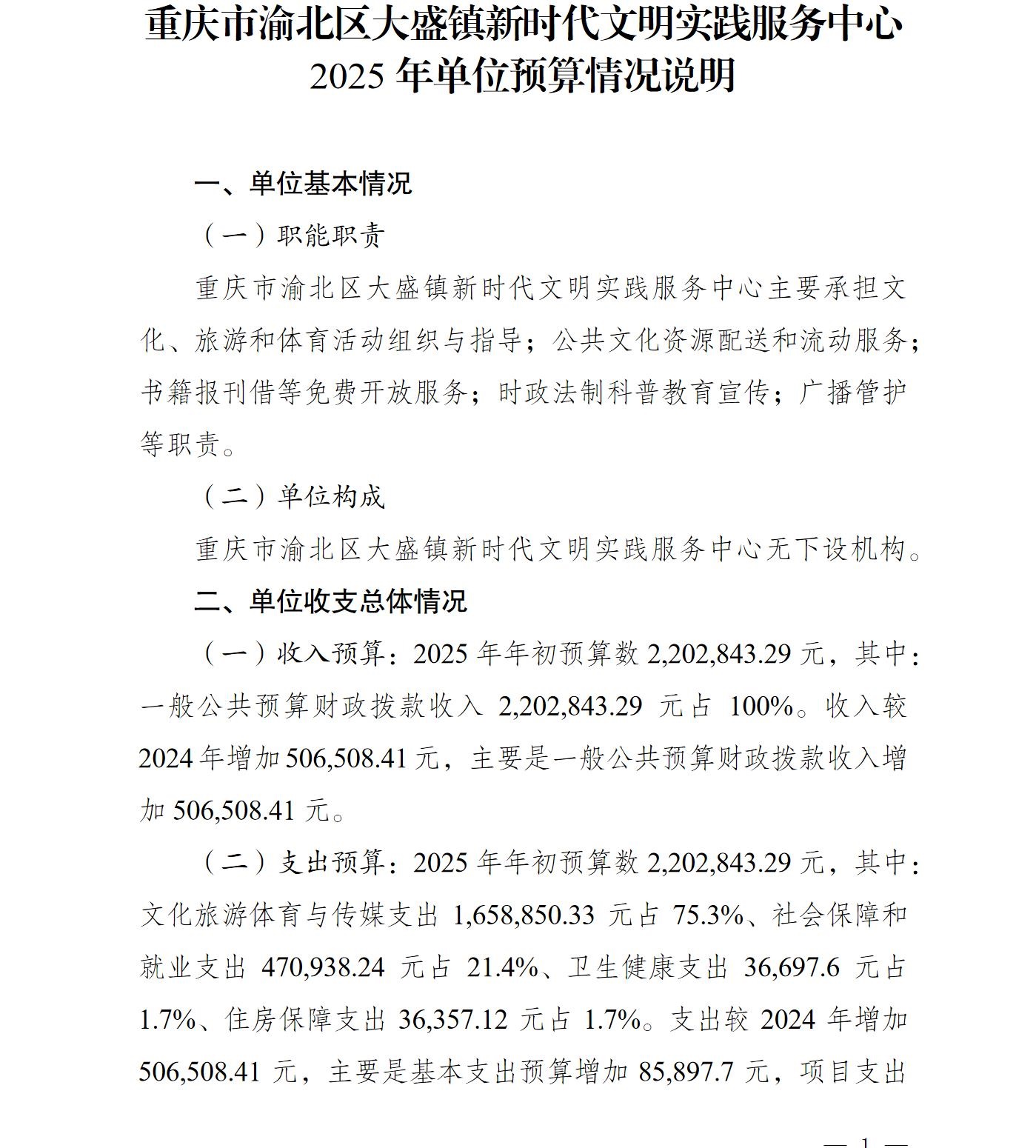 重庆市渝北区大盛镇新时代文明实践服务中心2025年单位预算情况说明