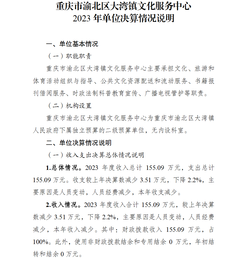 重庆市渝北区大湾镇文化服务中心2023年单位决算情况说明及附表.pdf