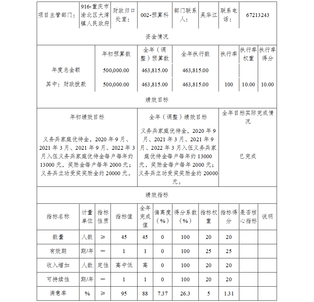 重庆市渝北区大湾镇退役军人服务站2023年部门决算公开
