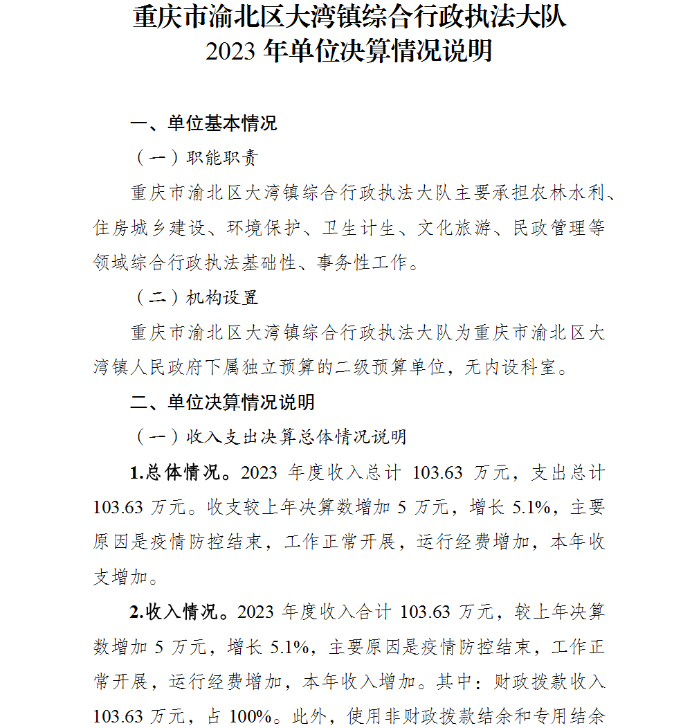 重庆市渝北区大湾镇综合行政执法大队2023年部门决算公开