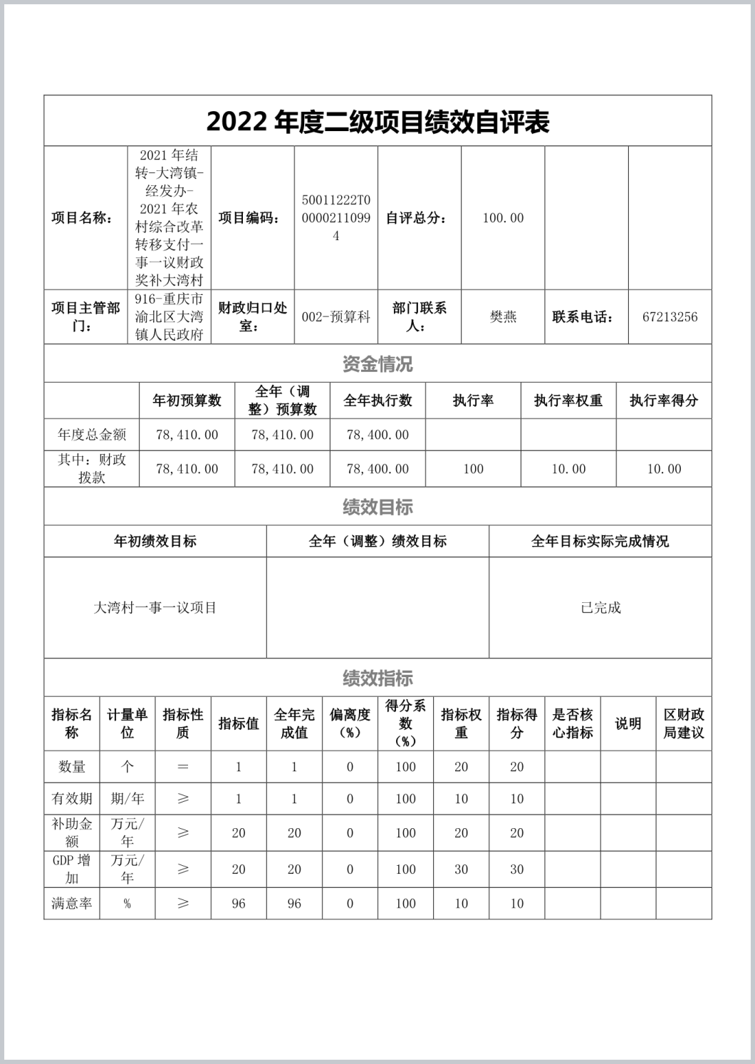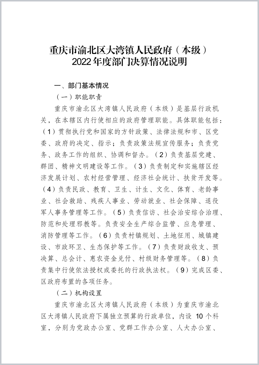 重庆市渝北区大湾镇人民政府(本级)2022年部门决算公开