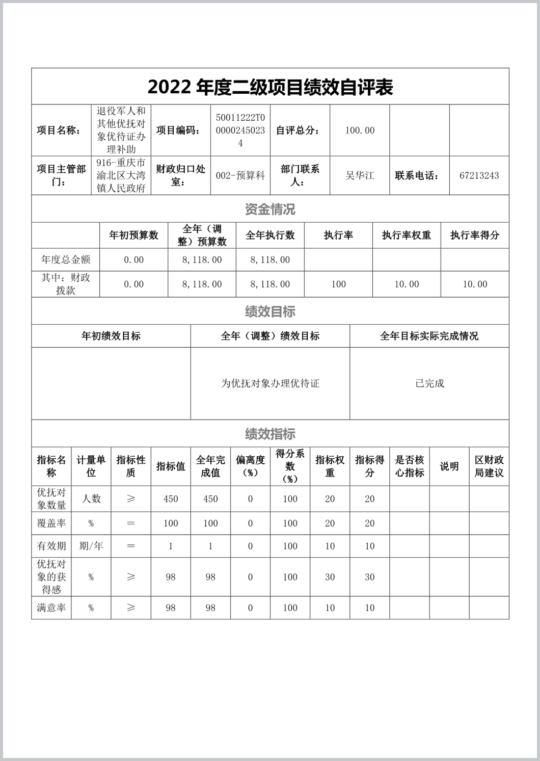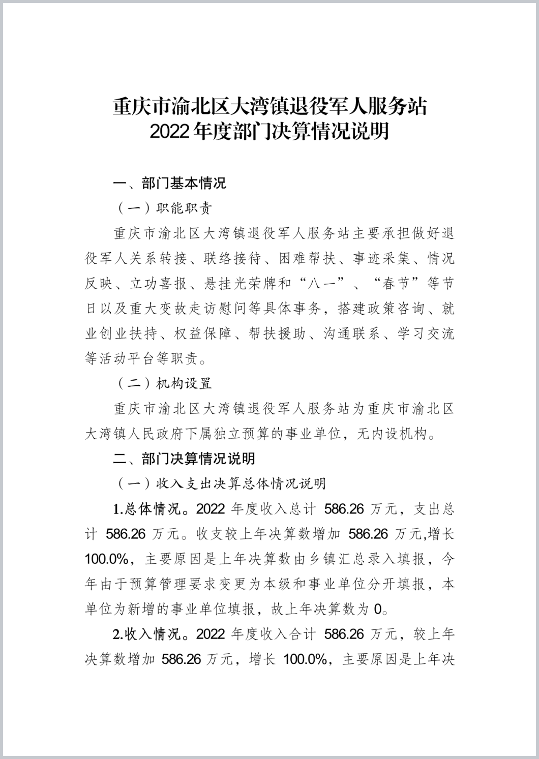 重庆市渝北区大湾镇退役军人服务站2022年部门决算公开