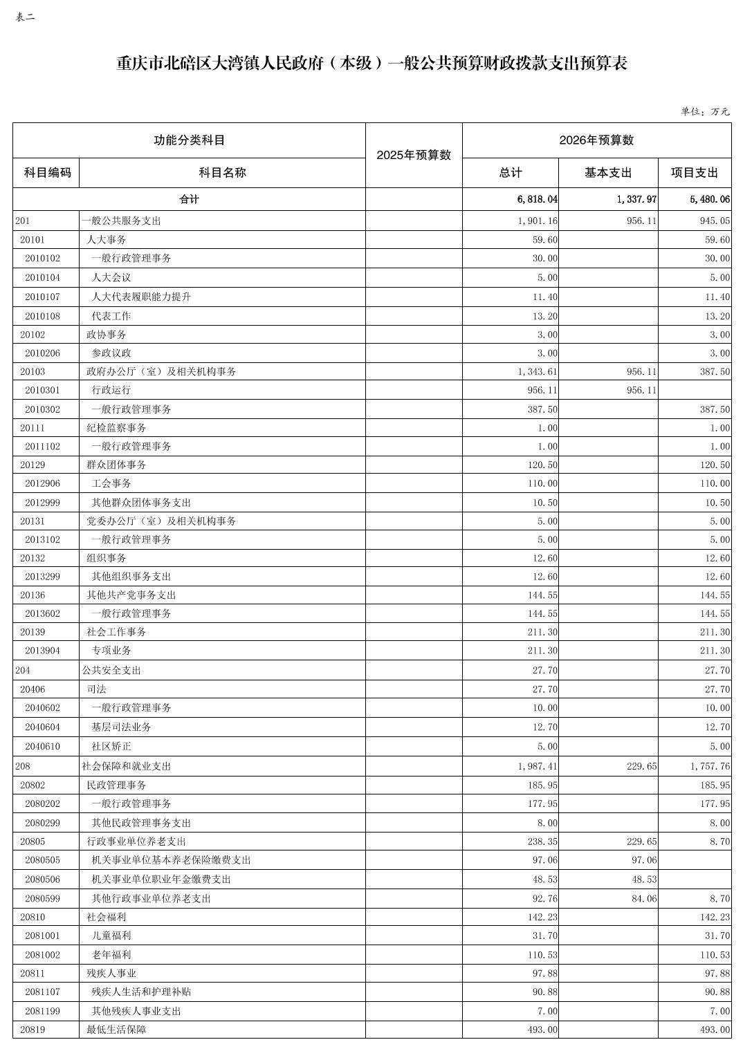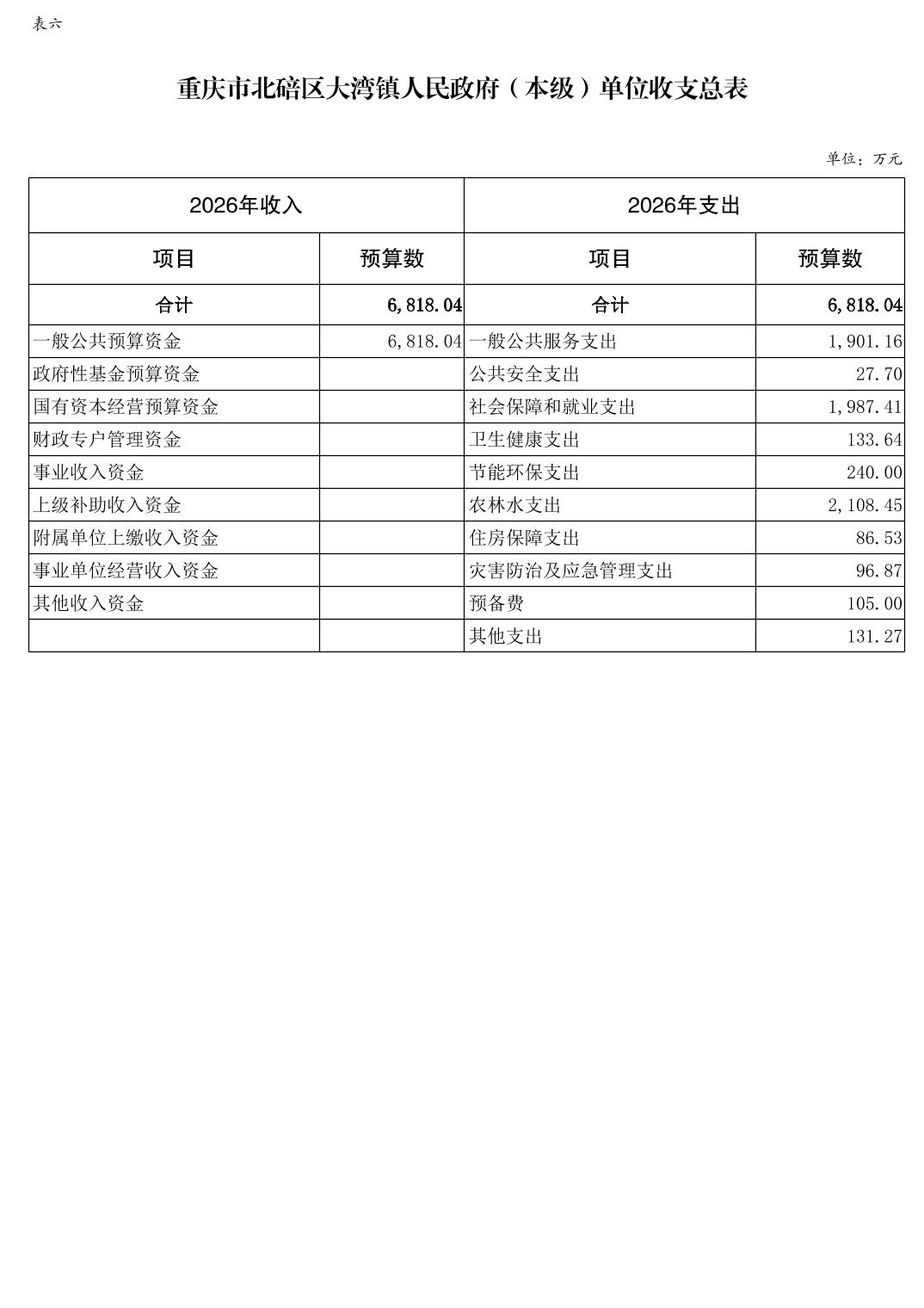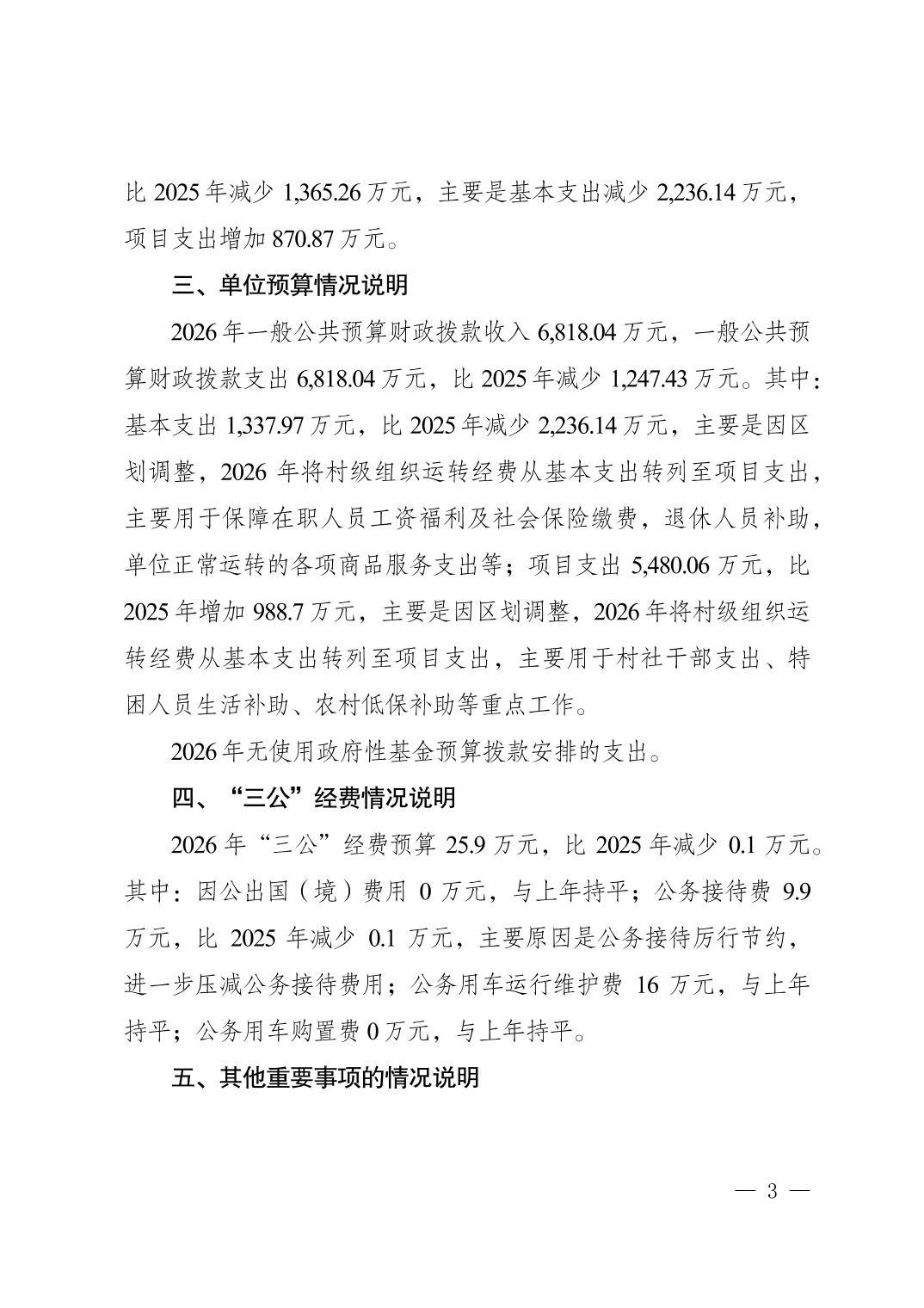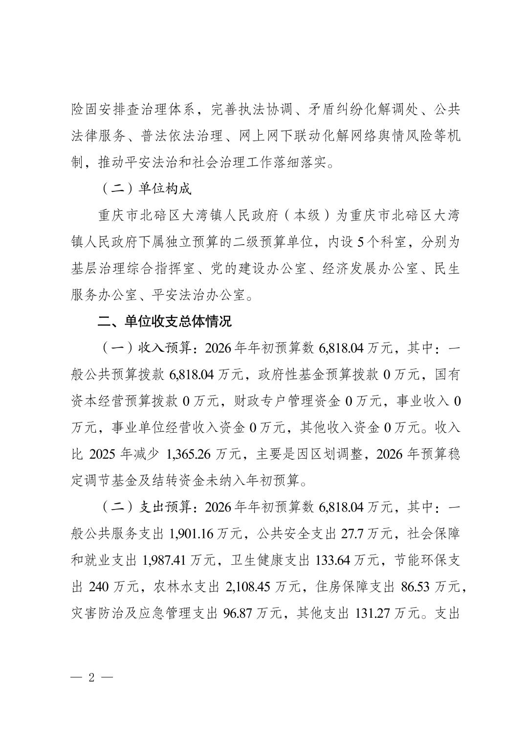 重庆市北碚区大湾镇人民政府(本级)2026年单位预算情况说明