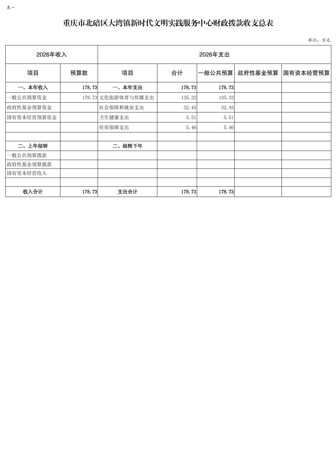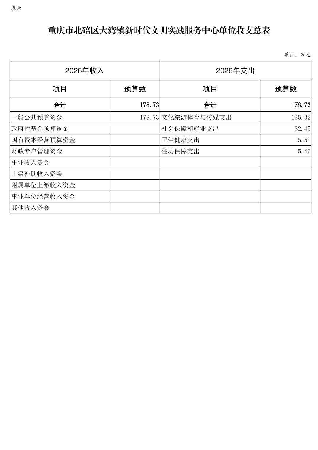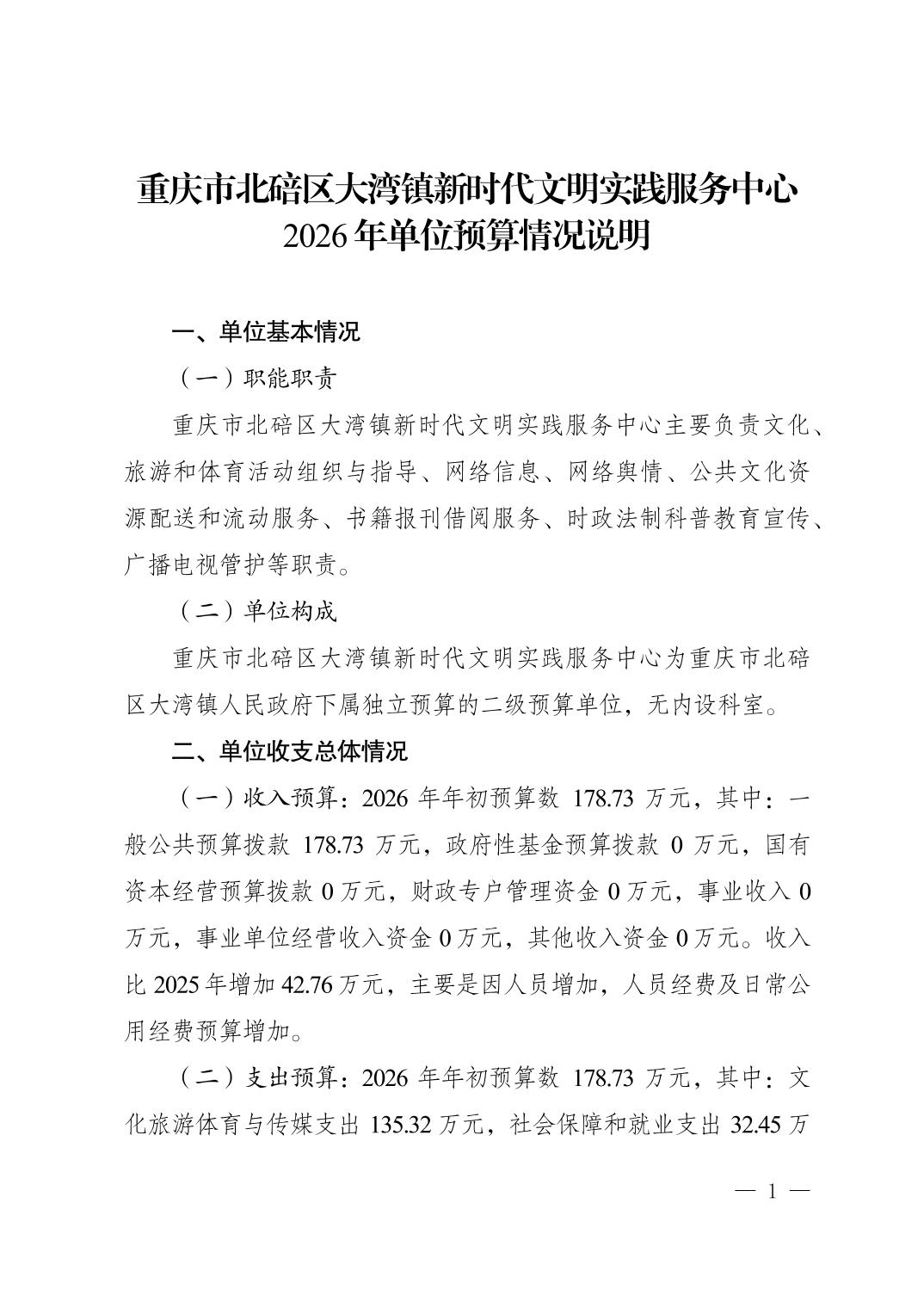 重庆市北碚区大湾镇新时代文明实践服务中心 2026年单位预算情况说明
