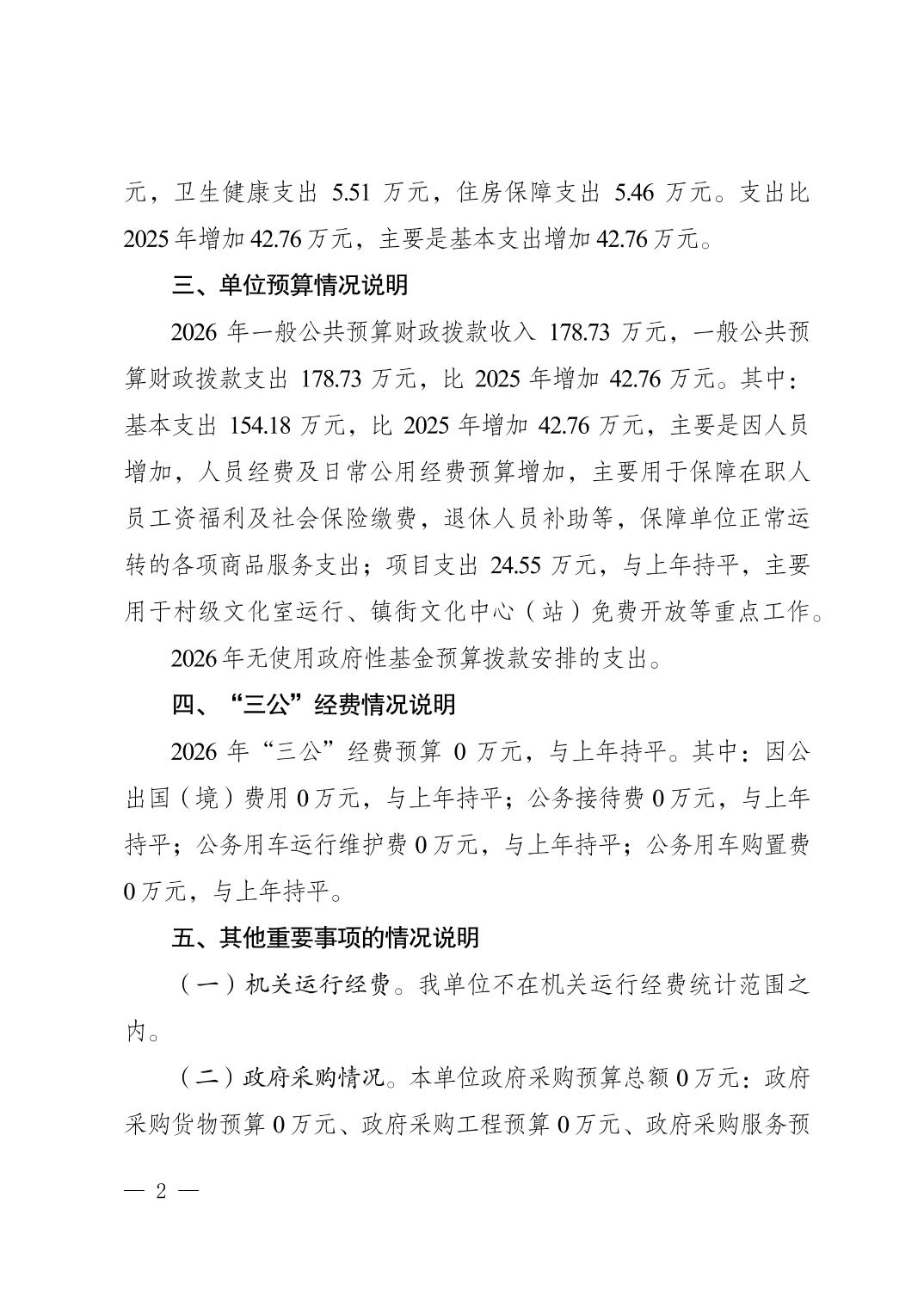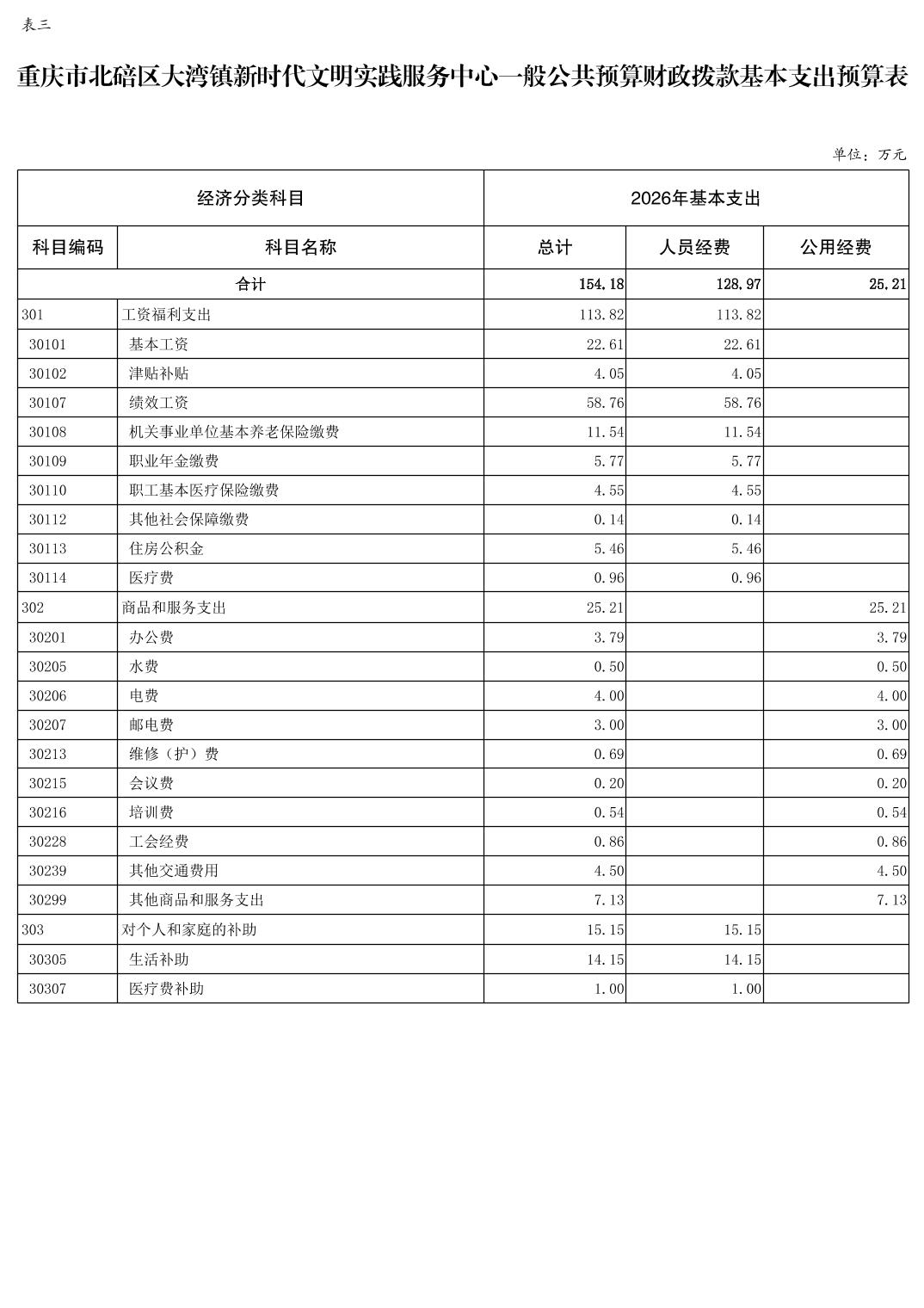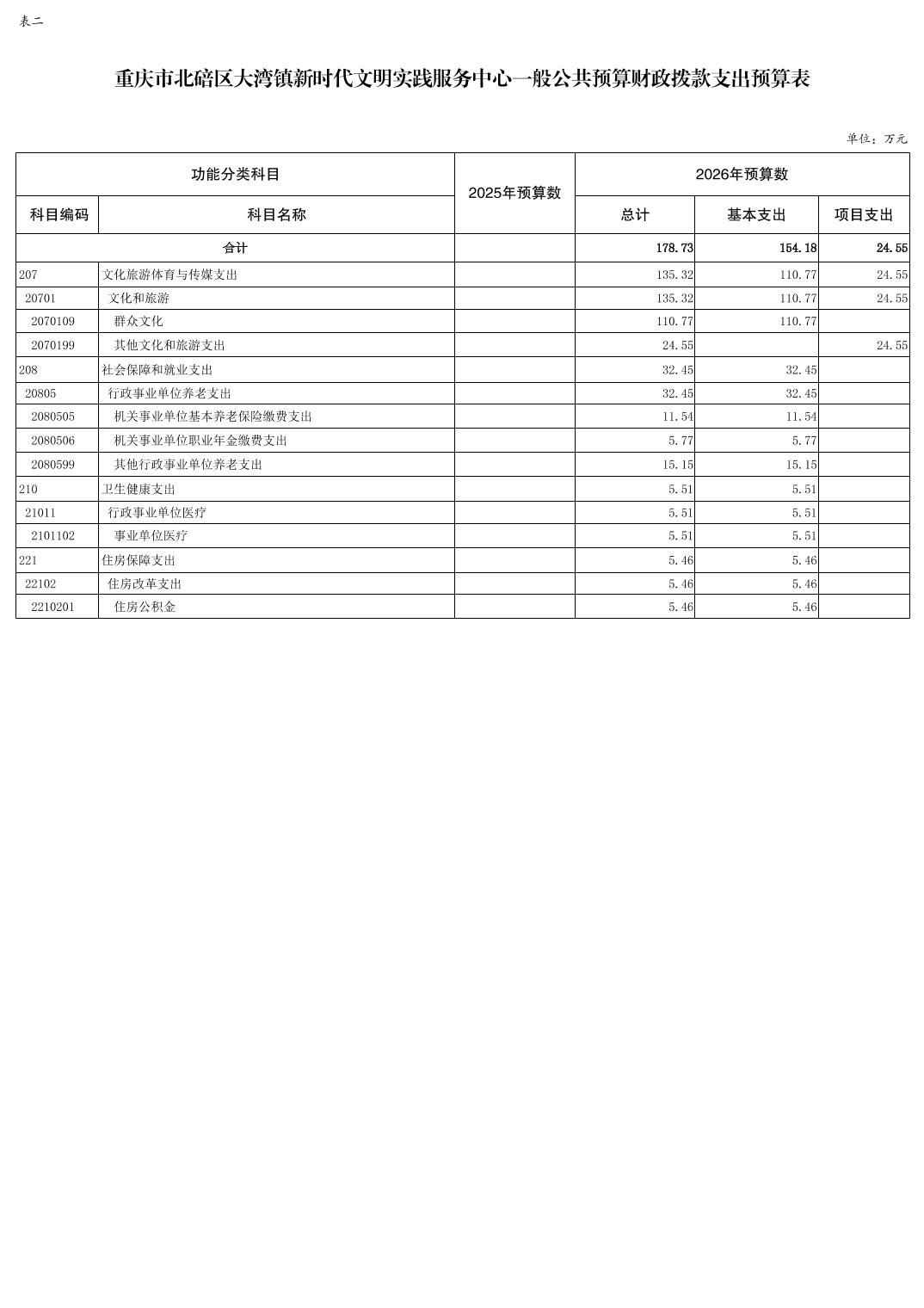重庆市北碚区大湾镇新时代文明实践服务中心 2026年单位预算情况说明