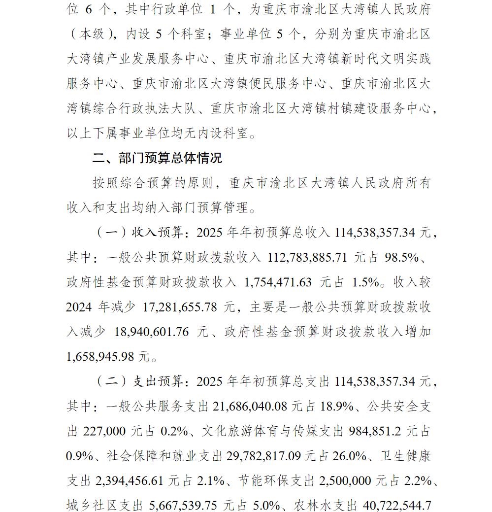 重庆市渝北区大湾镇人民政府2025年部门预算情况说明