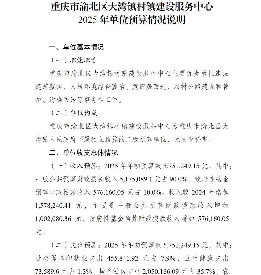 重庆市渝北区大湾镇村镇建设服务中心2025年单位预算情况说明及附表.pdf