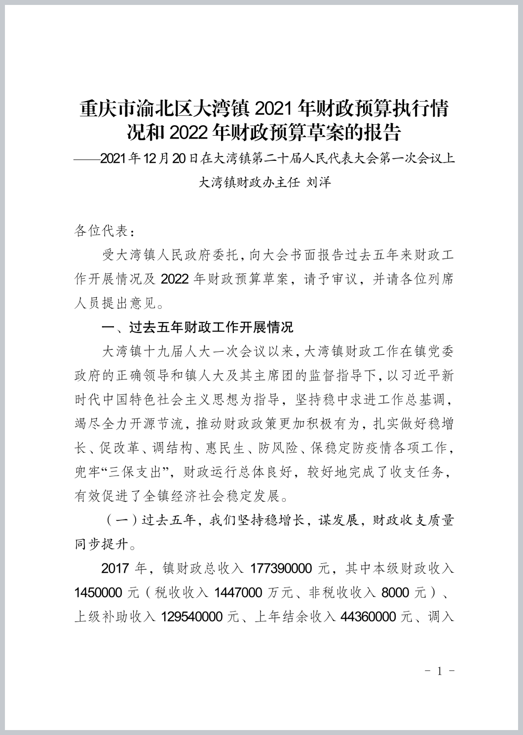 重庆市渝北区大湾镇2021年财政预算执行情况和2022年预算草案的报告.pdf
