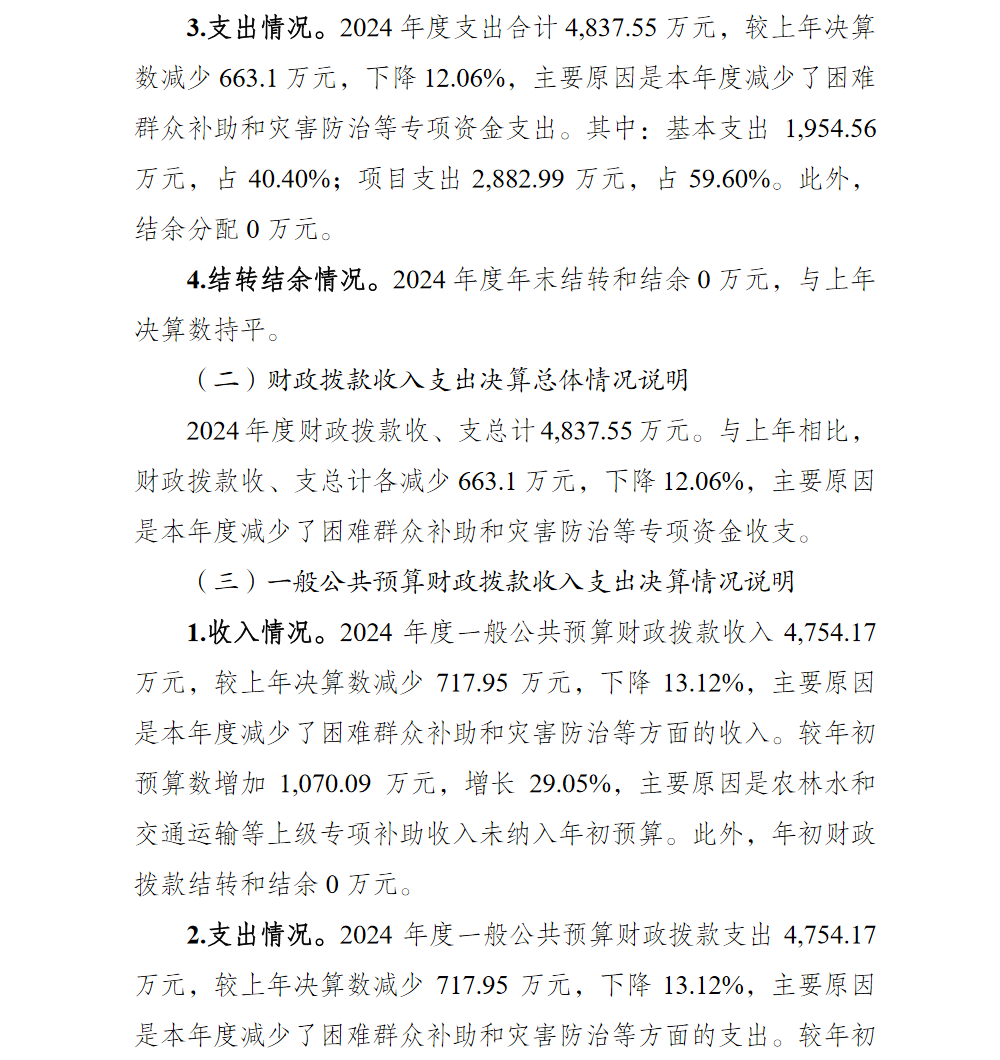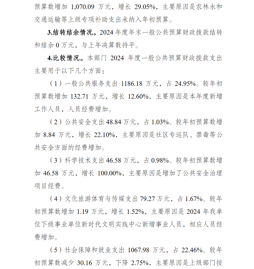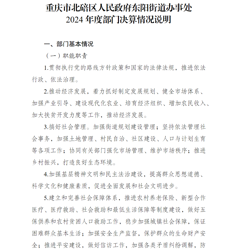 重庆市北碚区人民政府东阳街道办事处2024年度部门决算情况说明