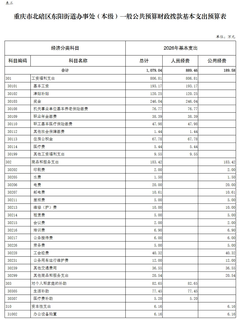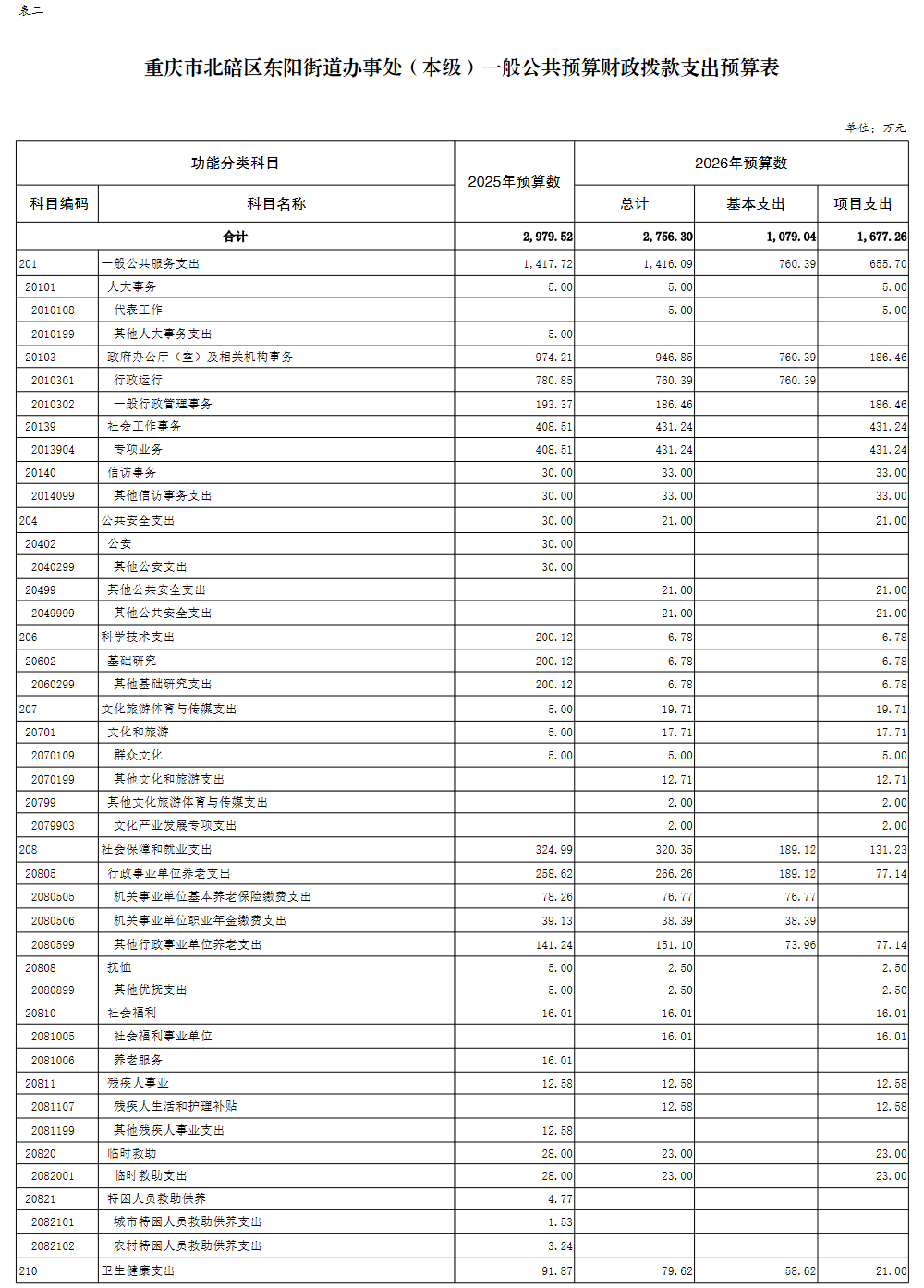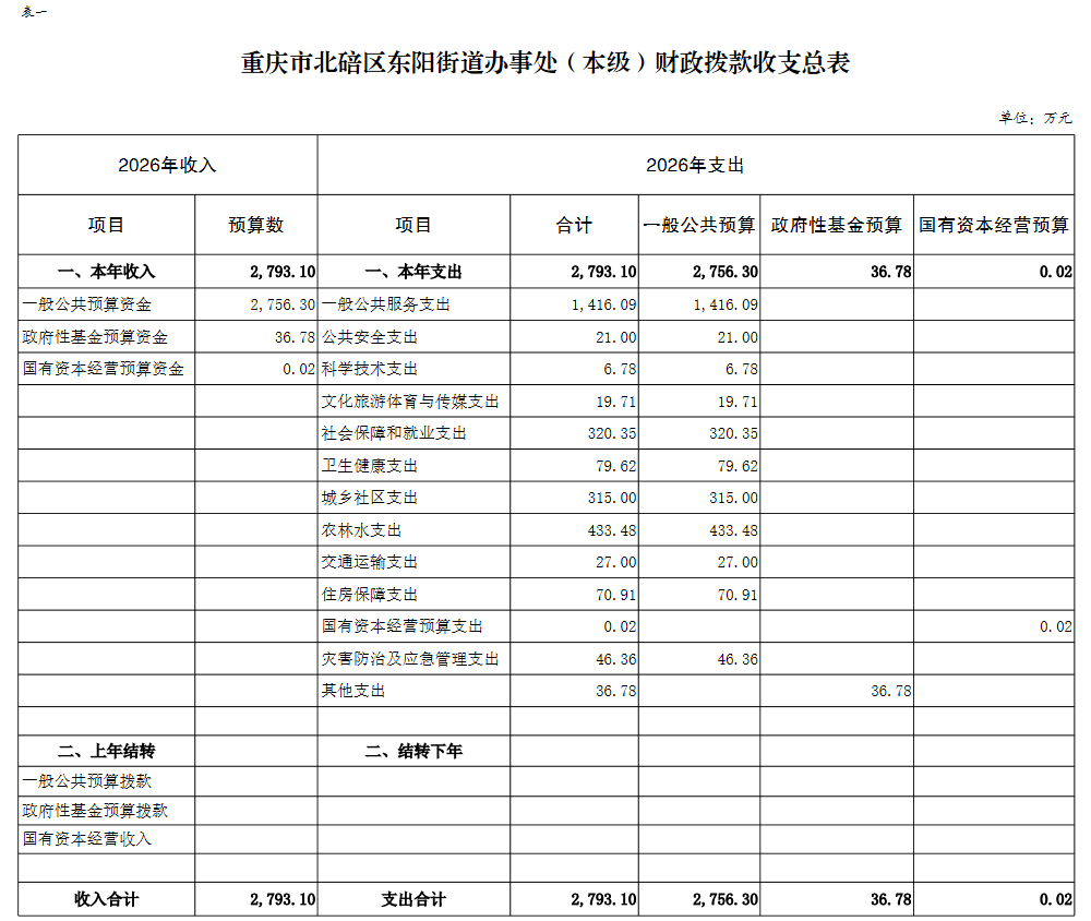 重庆市北碚区东阳街道办事处(本级)2026年单位预算情况说明及附表.pdf