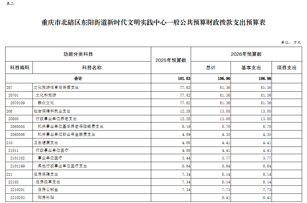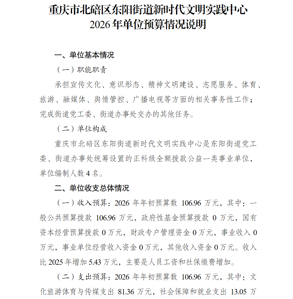 重庆市北碚区东阳街道新时代文明实践中心2026年单位预算情况说明及附表.pdf