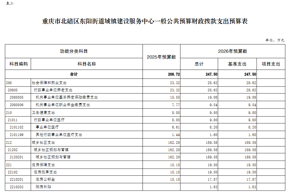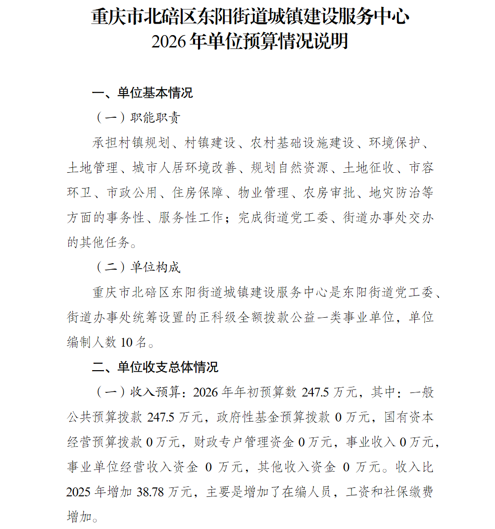 重庆市北碚区东阳街道城镇建设服务中心2026年单位预算情况说明及附表.pdf