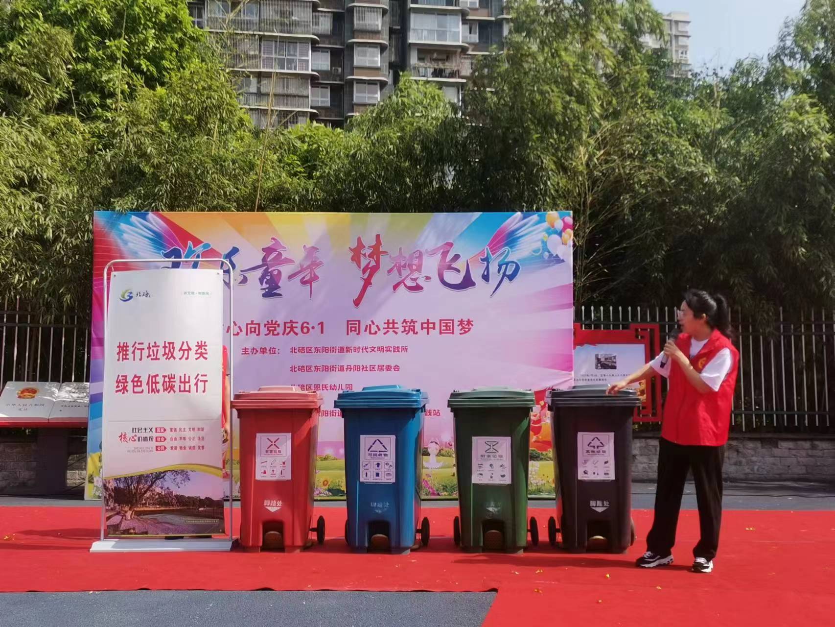 为大力推进垃圾分类宣传工作,努力提倡绿色社区、低碳生活的科学理念,近日,东阳街道联合恩氏幼儿园在丹阳社区人大主题广场开展“童心向党庆6.1·同心共筑中国梦”垃圾分类宣传活动。通过主题宣传使广大居民及小朋友认识到垃圾分类的重要性,自觉维护社区环境,打造干净、舒适的美丽社区。