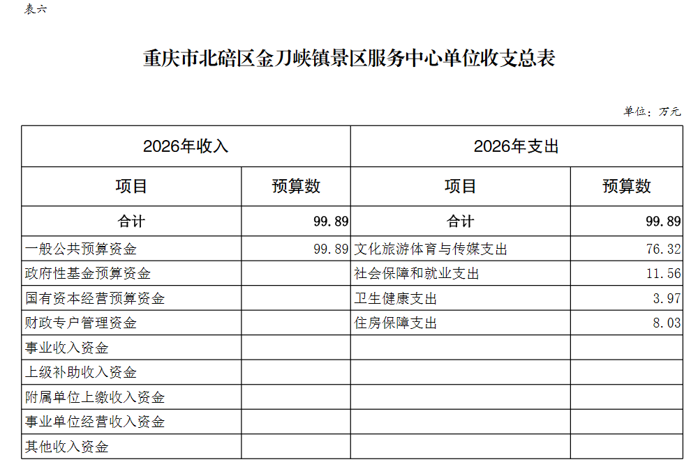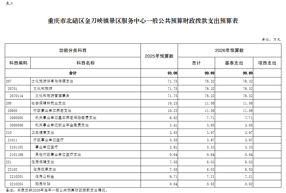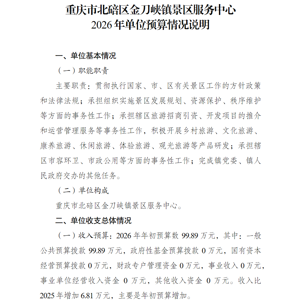 重庆市北碚区金刀峡镇景区服务中心2026年单位预算情况说明及附表.pdf