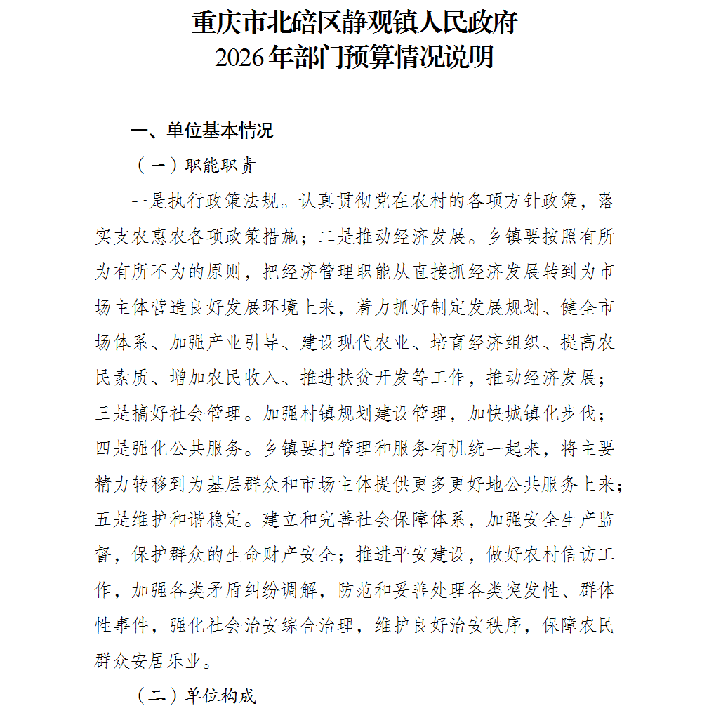 重庆市北碚区静观镇人民政府2026年部门预算情况说明及附表