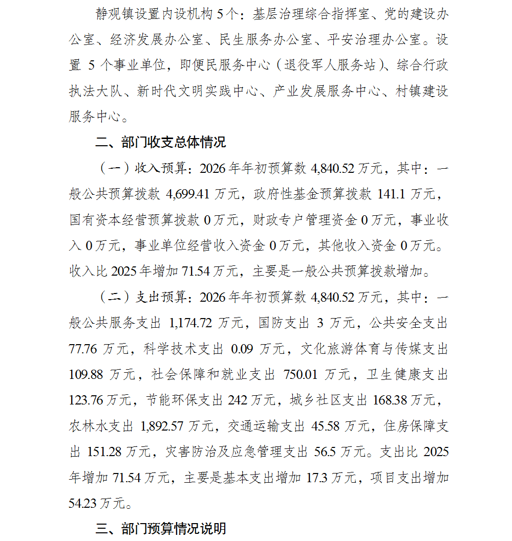 重庆市北碚区静观镇人民政府2026年部门预算情况说明及附表.pdf