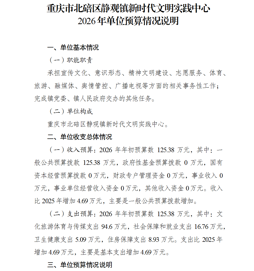 重庆市北碚区静观镇新时代文明实践中心2026年单位预算情况说明及附表.pdf