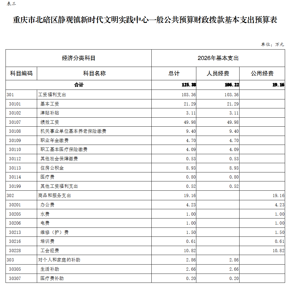重庆市北碚区静观镇新时代文明实践中心2026年单位预算情况说明及附表