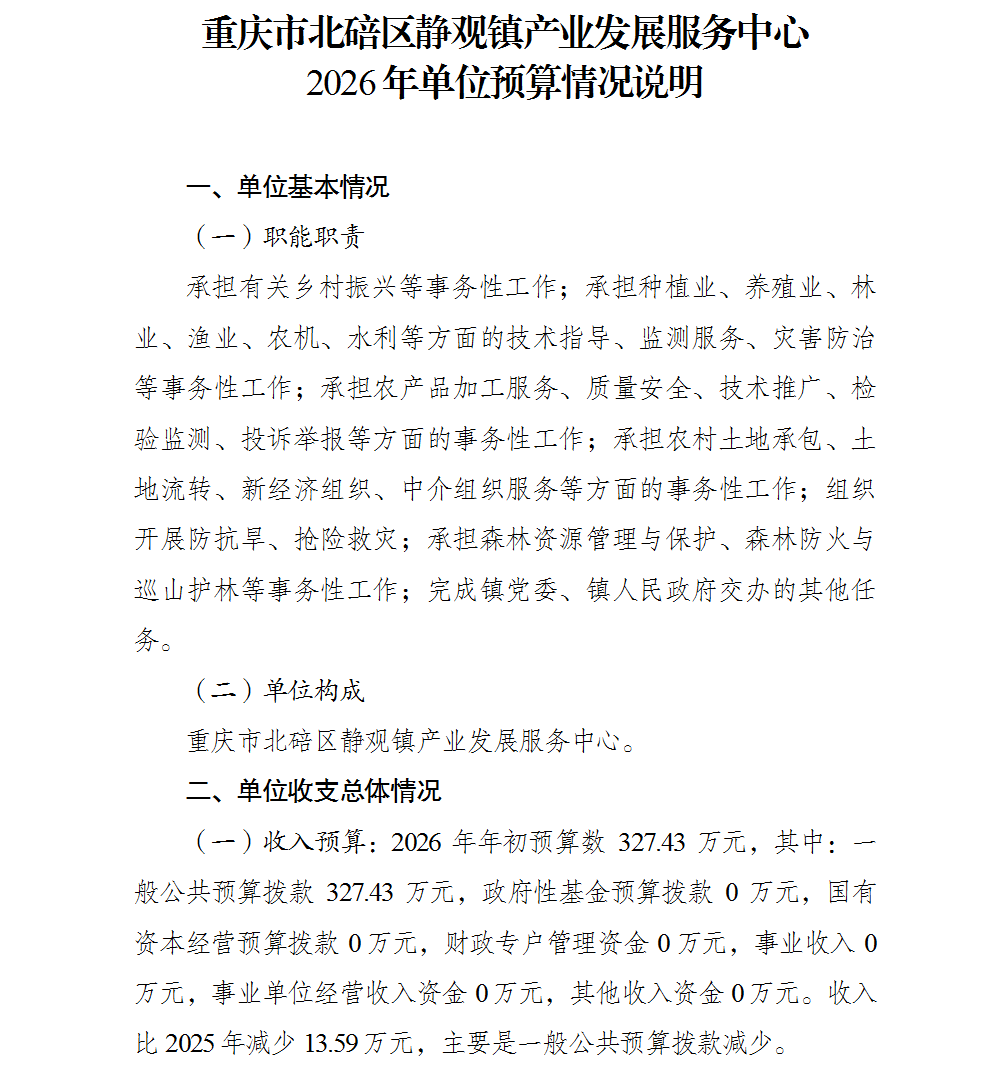 重庆市北碚区静观镇产业发展服务中心2026年单位预算情况说明及附表.pdf