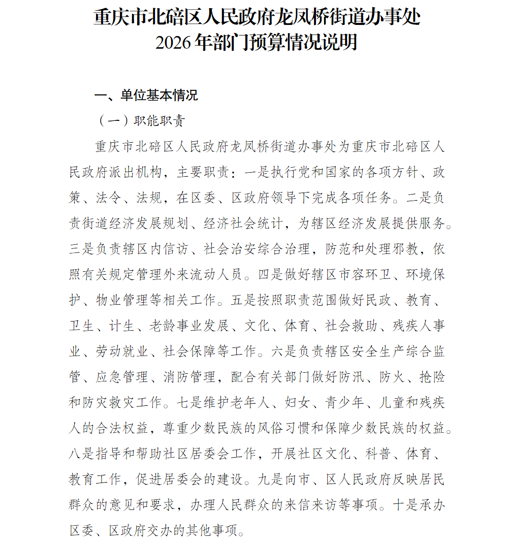 重庆市北碚区人民政府龙凤桥街道办事处2026年部门预算情况说明及附表.pdf